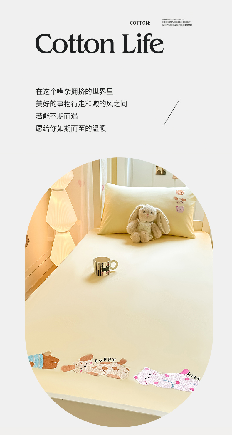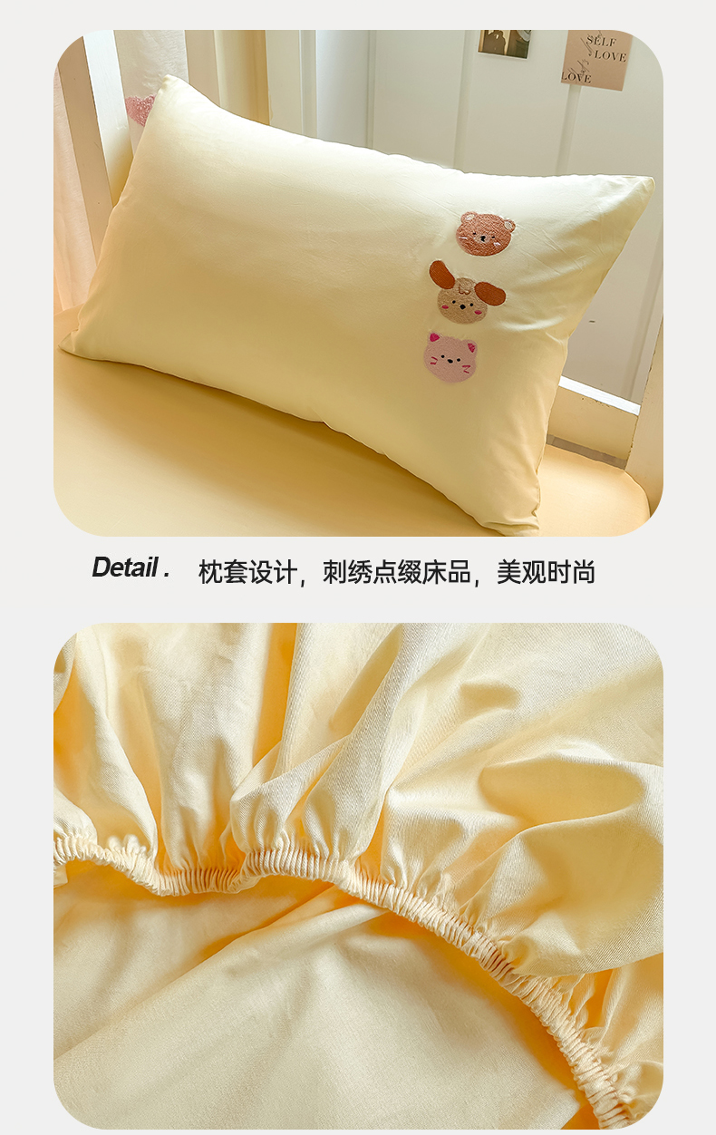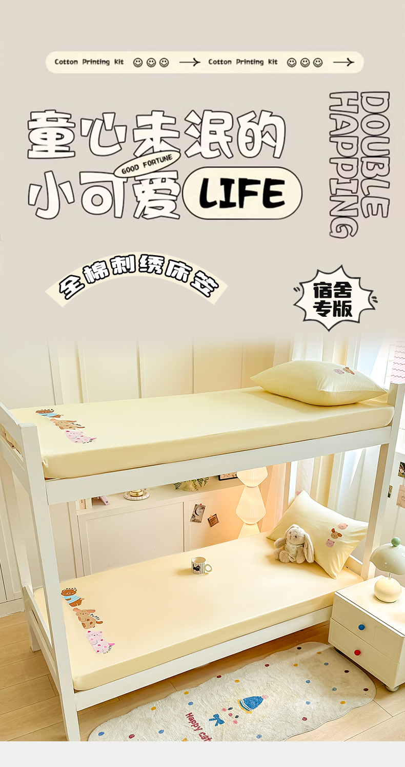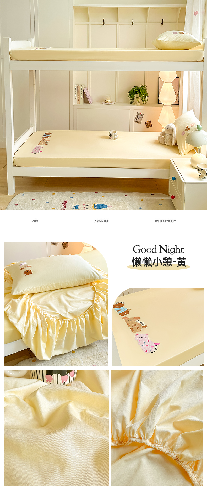 灰鲸 2025新款全棉刺绣床笠-懒懒小憩学生床系列 懒懒小憩-黄