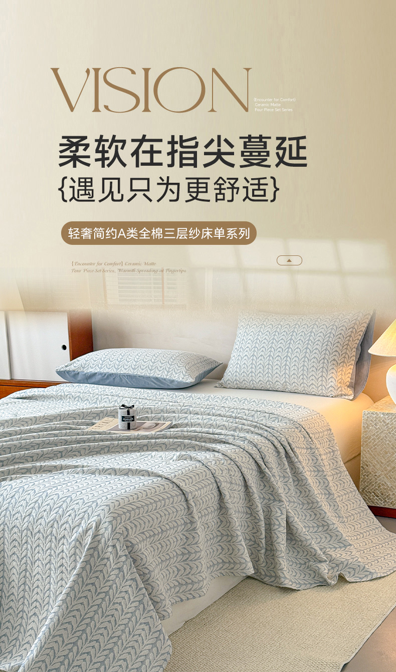 当前位置: 91家纺网 > 商品网购 > 床上用品 > 床单 > 眠博士 2025新款全棉纯棉三层纱单床单 床单单件 三层纱床单-荞麦蓝