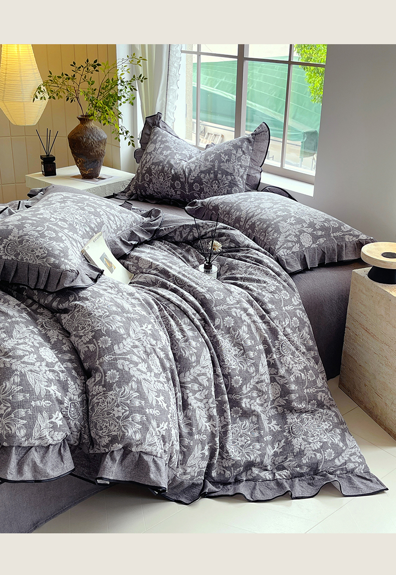 宝士康家纺 2025新品10A抗菌原麻荷叶边床单款四件套 时光森林
