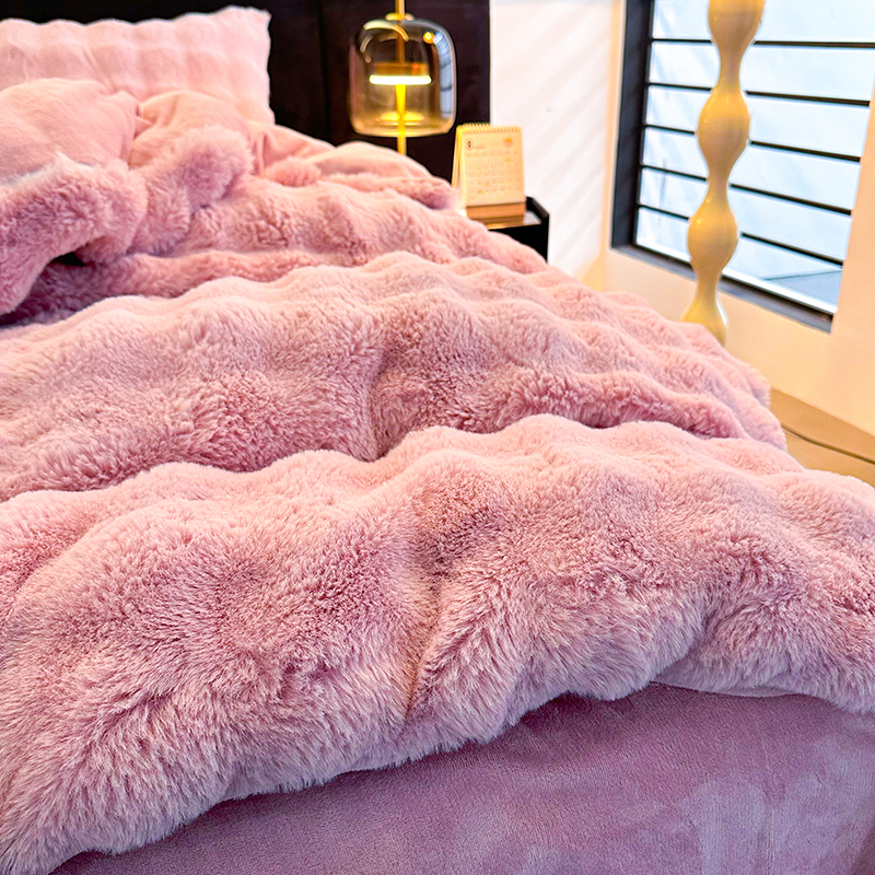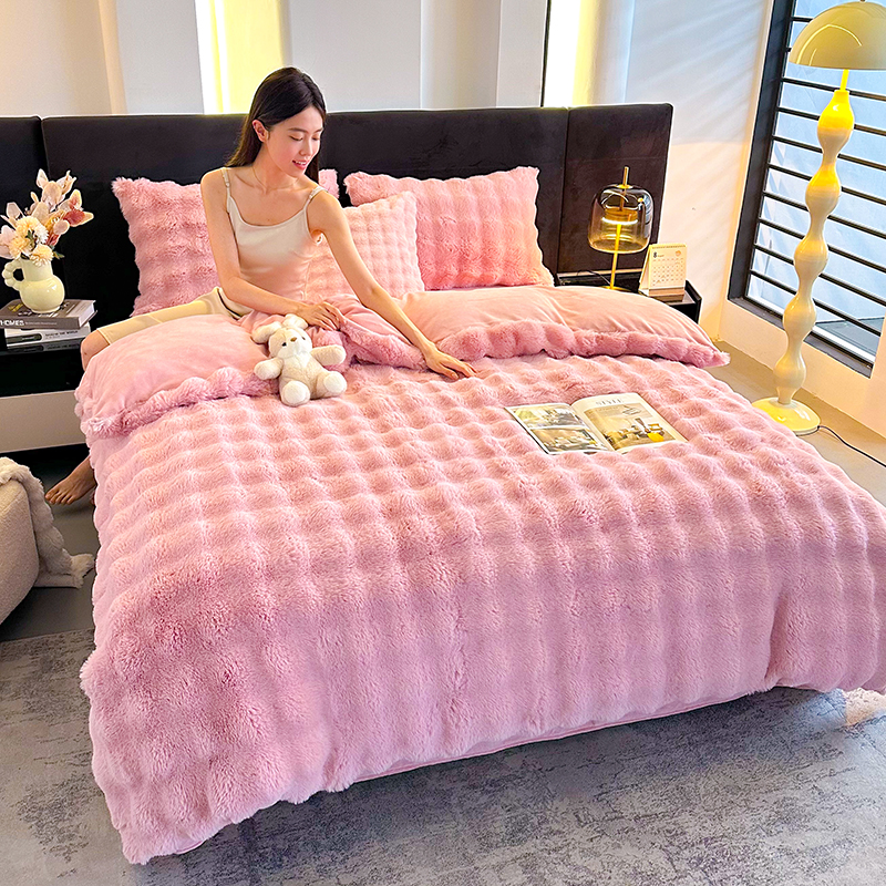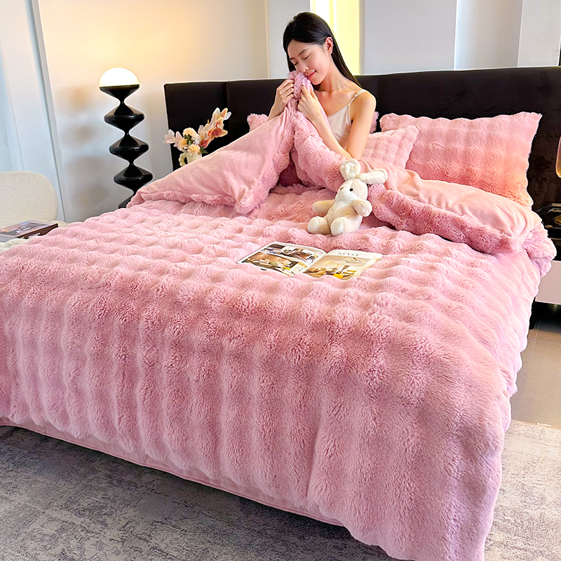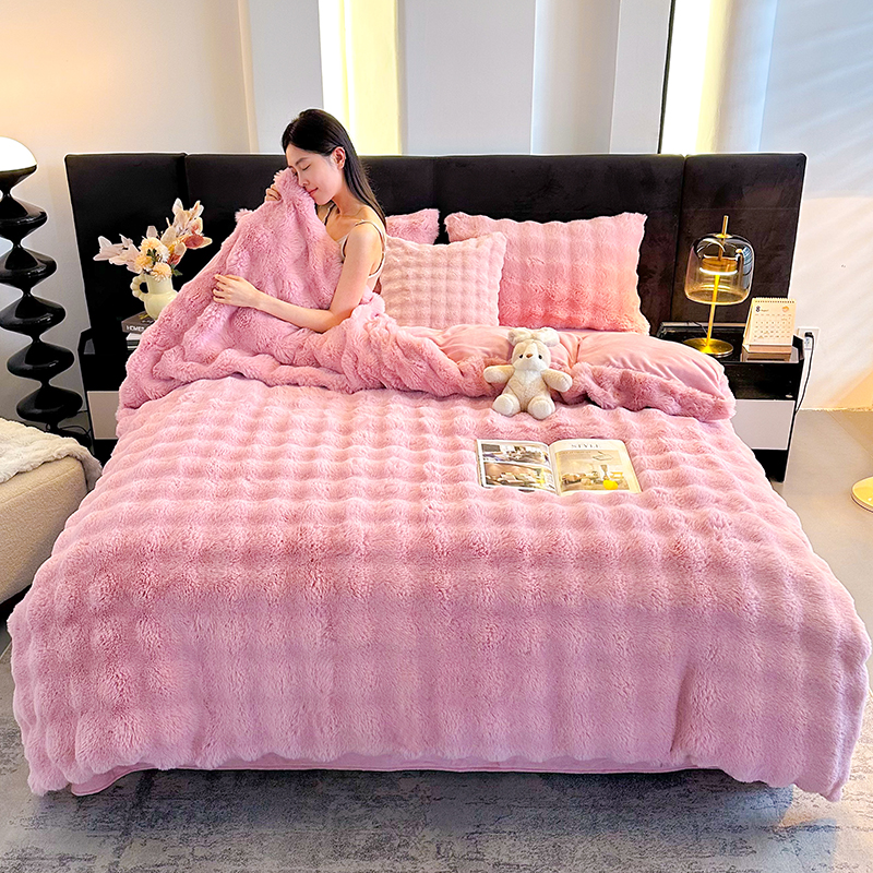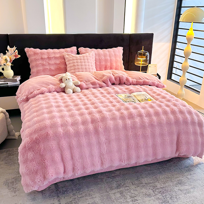 商品名称:赢盛家纺 2025新款亲肤舒适纯色泡泡兔兔绒加厚牛奶绒床单款三件套四件套 粉色