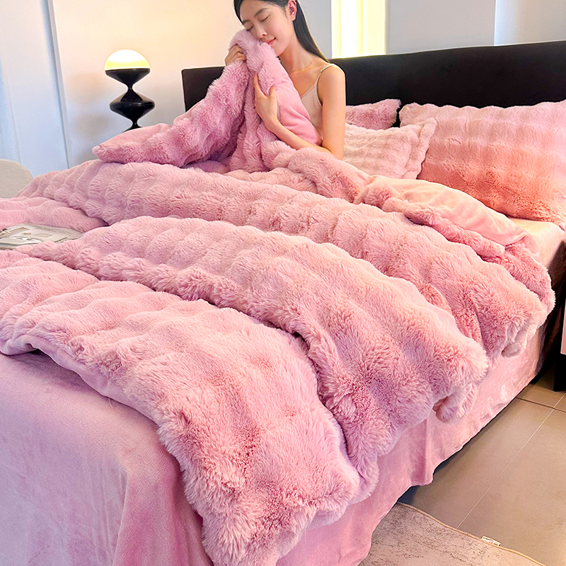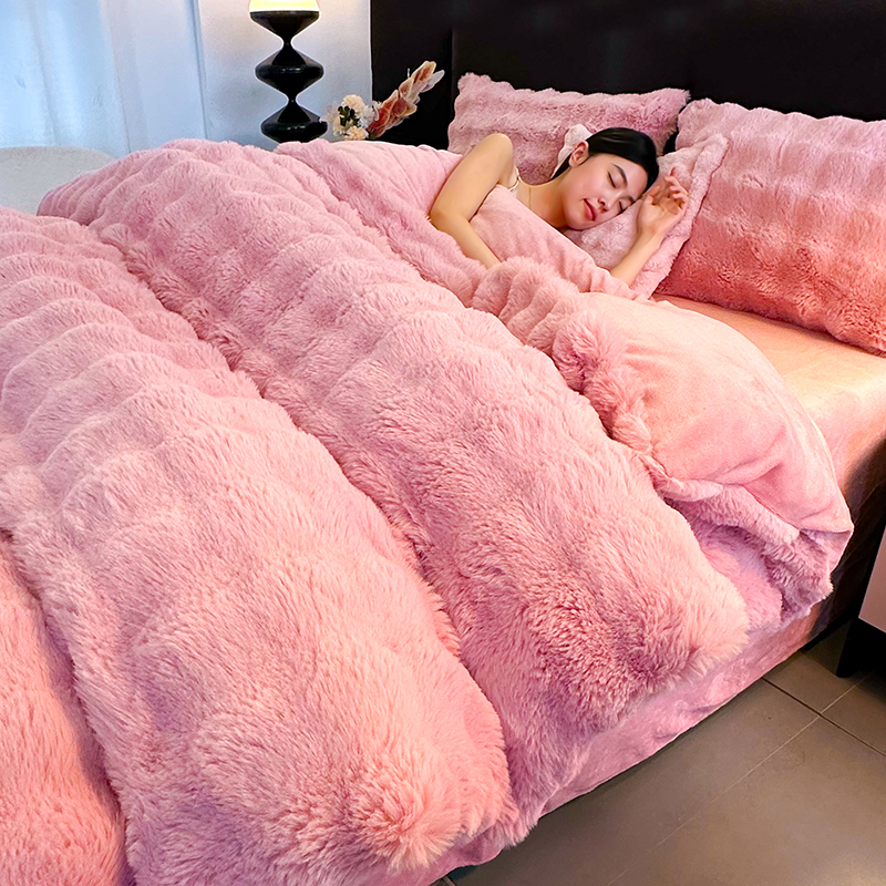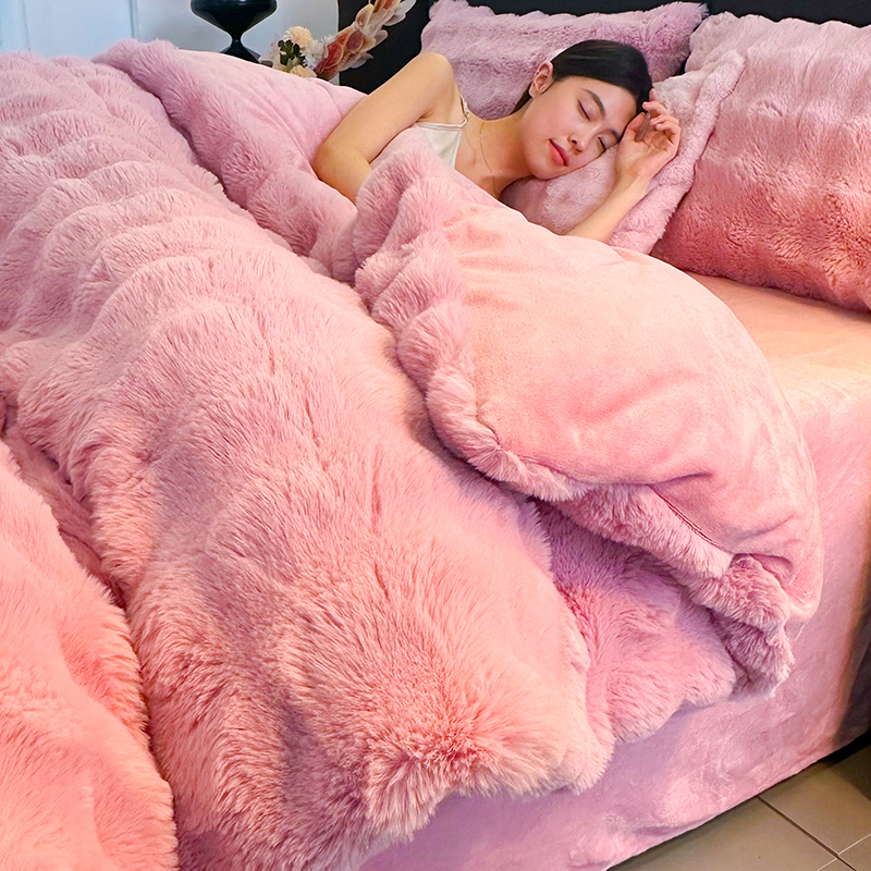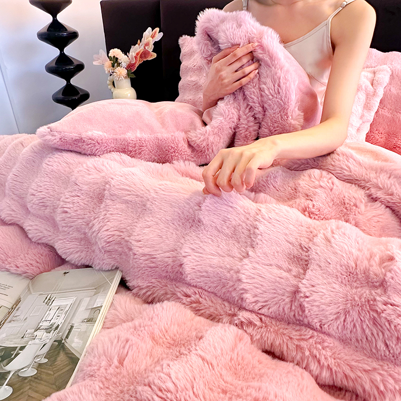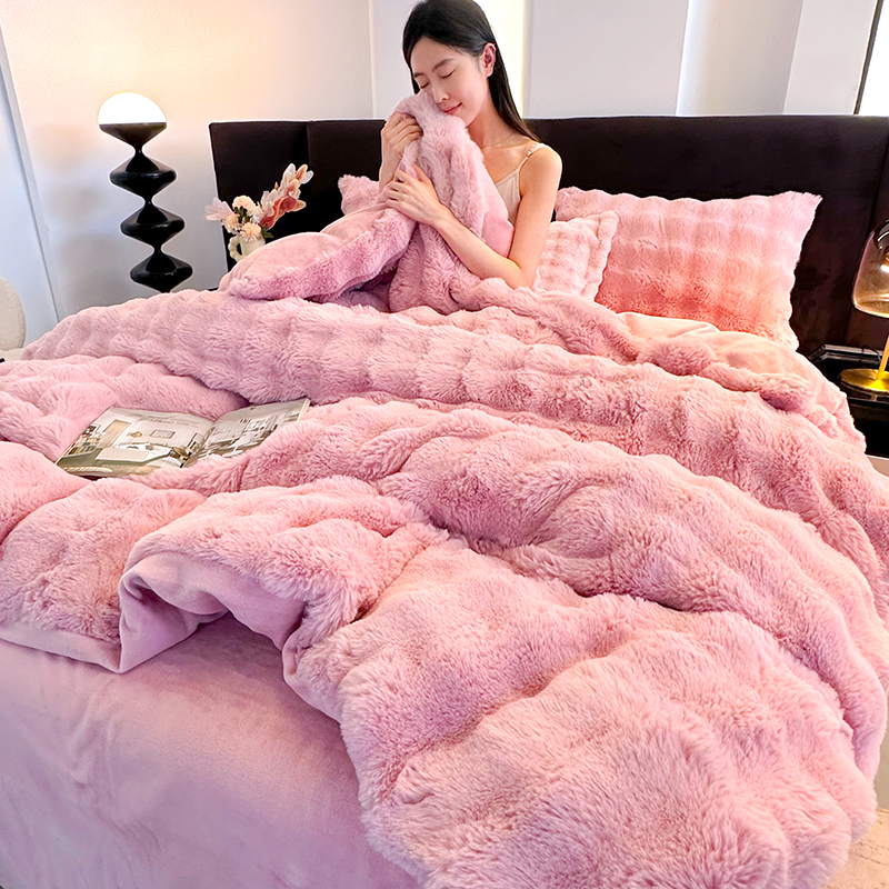 商品名称:赢盛家纺 2025新款亲肤舒适纯色泡泡兔兔绒加厚牛奶绒床单款三件套四件套 粉色