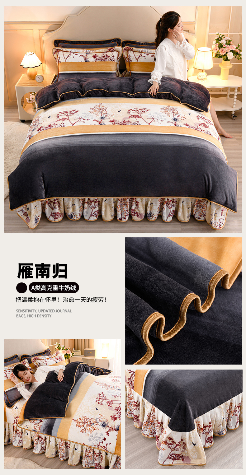 羽梦2025新款8.5斤牛奶法莱绒金貂法兰绒四件套直播爆款雁南归