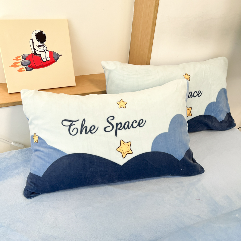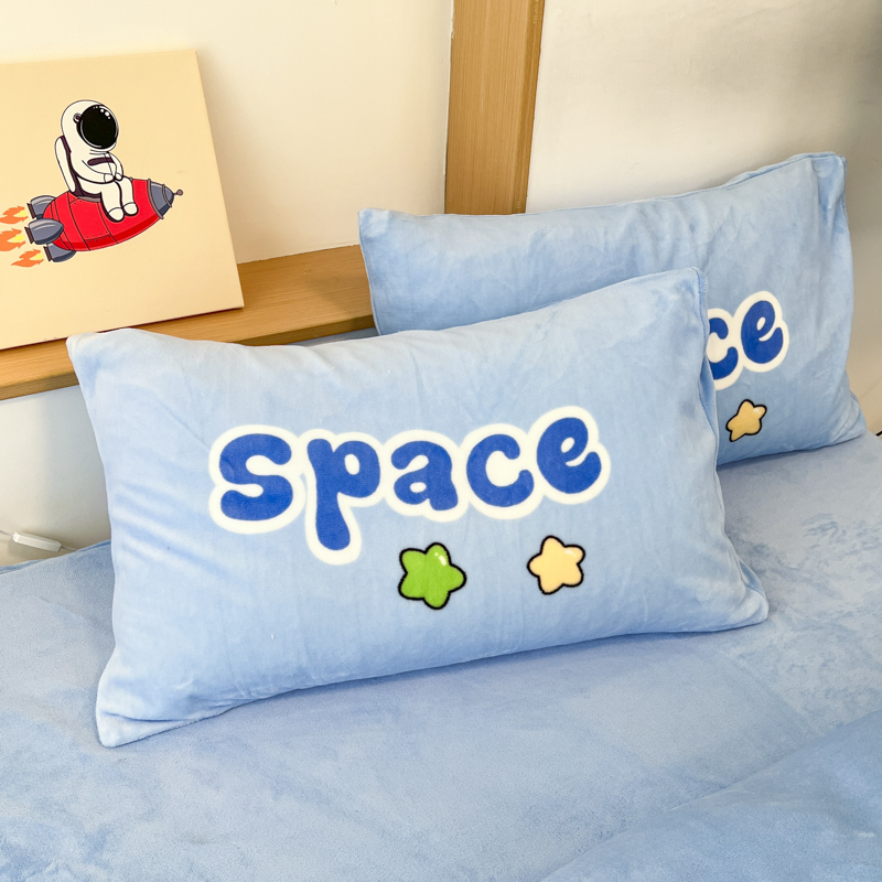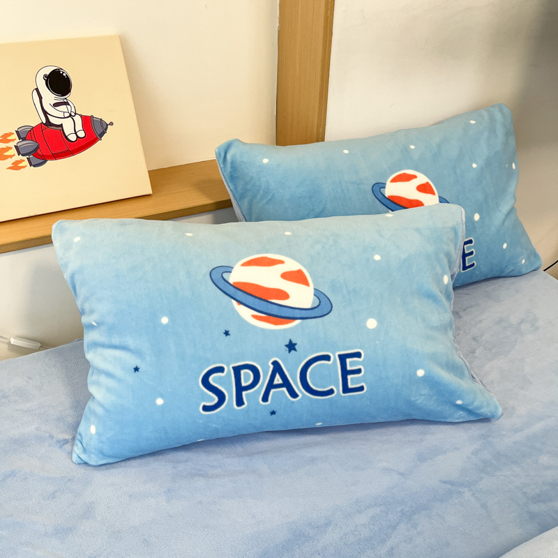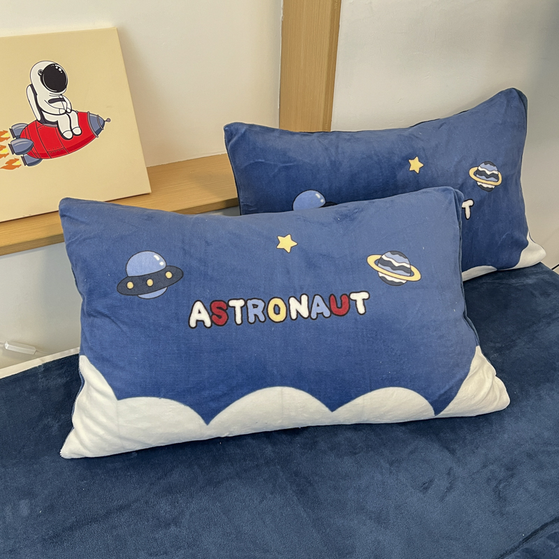 孩子王家纺 2025新款专版花色太空人大版卡通学生宿舍双面加厚牛奶绒系列单枕套--提供买家秀 快乐星球