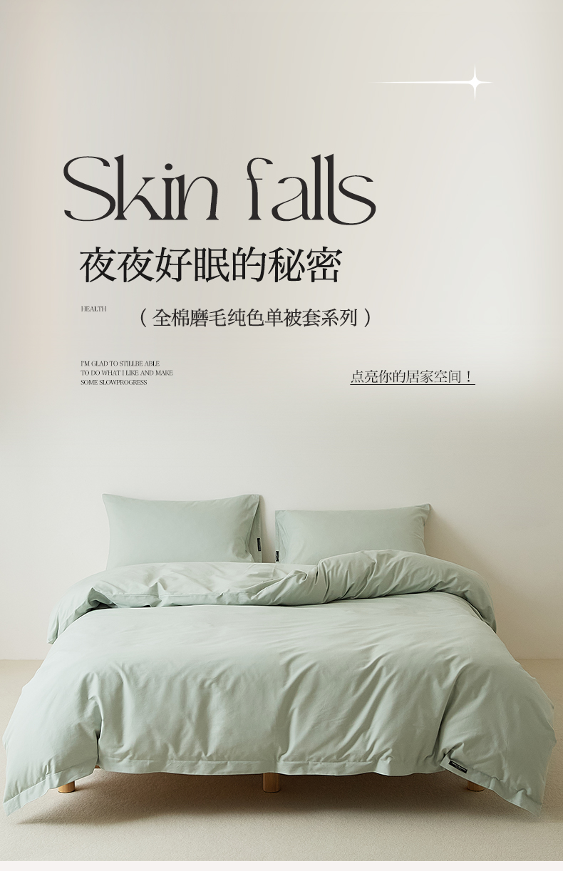 商品名称:EH家居 2025新款全棉磨毛纯色单被套-云栖系列 云栖-景蓝色