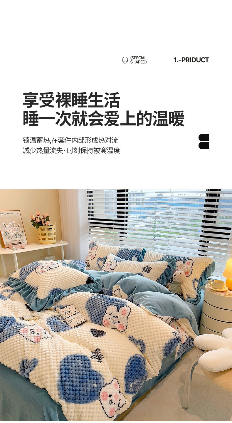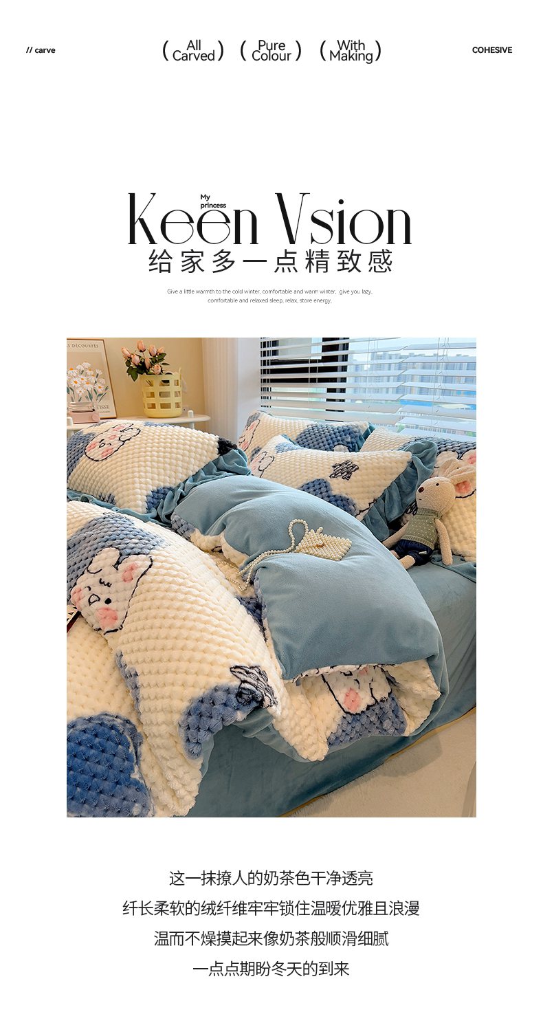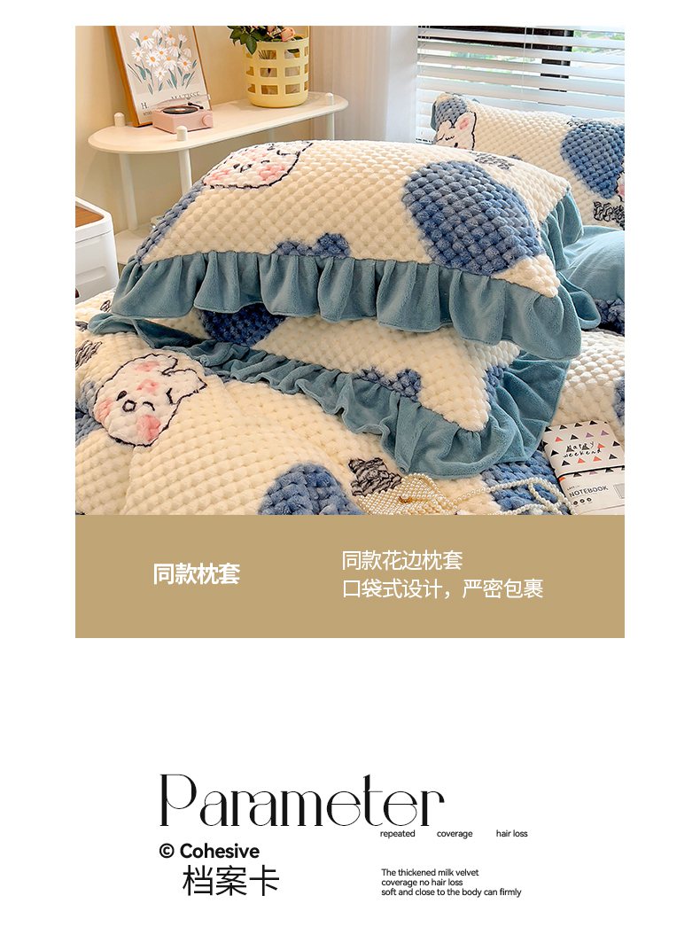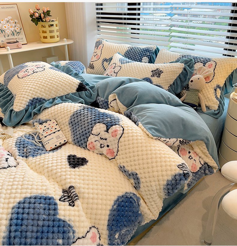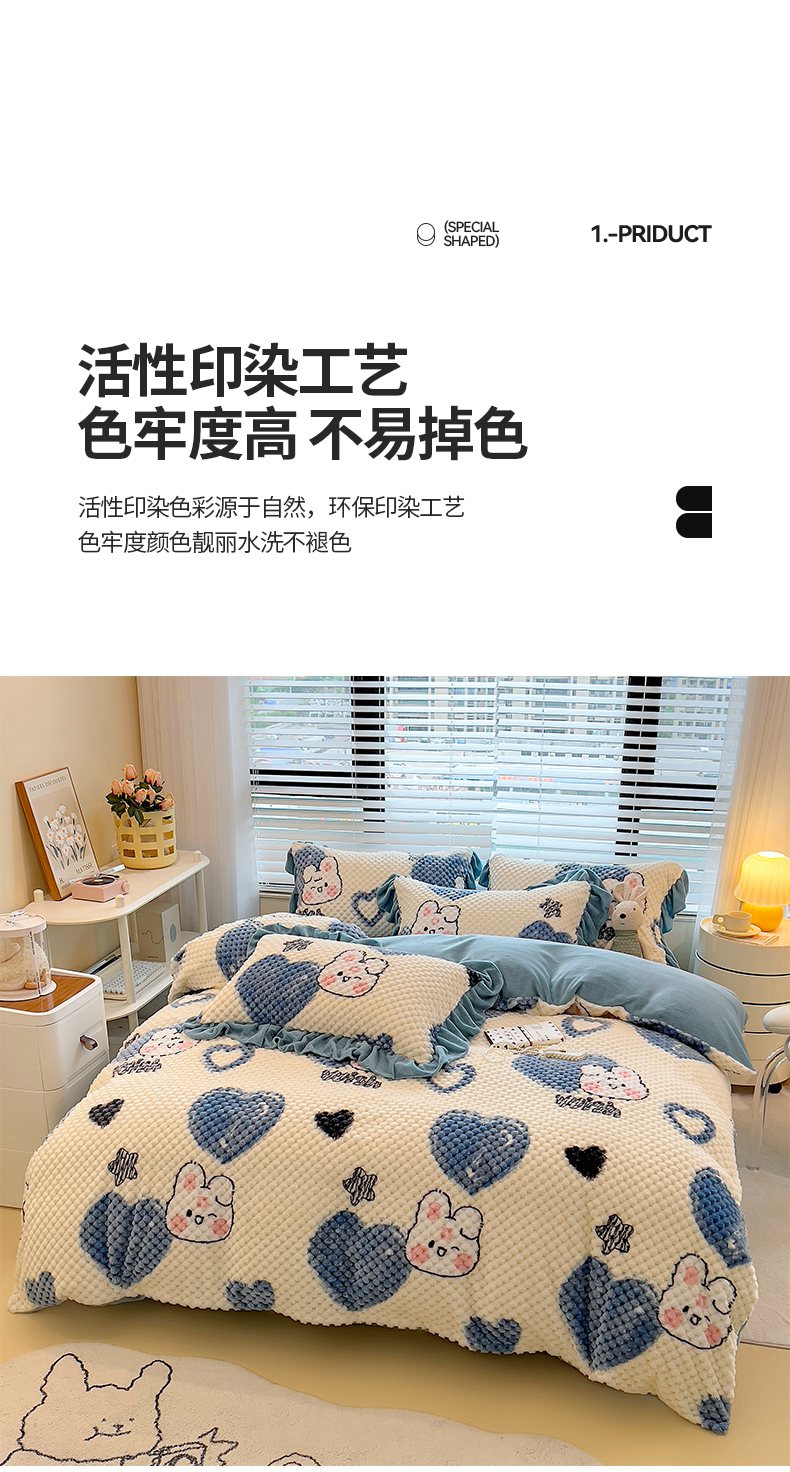商品名称:摩妮卡 2025新款提花豆豆绒卡通印花牛奶绒四件套 兔小宝