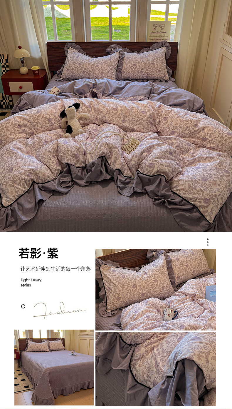 (总)美梦家纺 2025新款牛奶绒花边夹棉床盖四件套,爱心-灰,蝴蝶结-紫,蝶舞,蕾丝花-蓝,豆蔻,咖波点,蝴蝶结-灰,灵动草莓-米,秋叶-咖,甜美女孩,乌梅紫酱,星辰蝶语-紫,雨后花园,紫色物语,冰淇淋