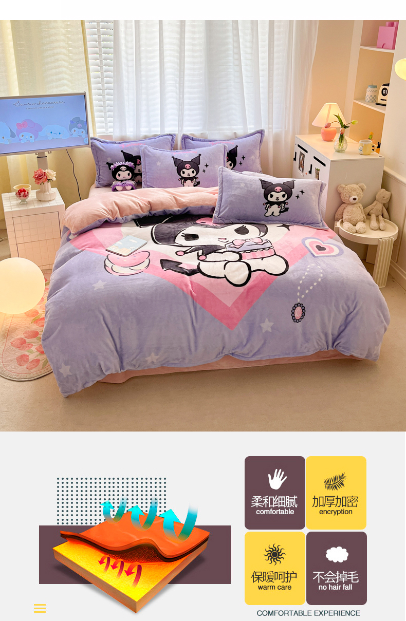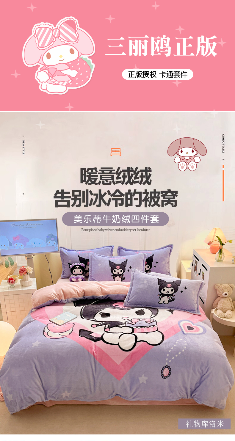 当前位置: 91家纺网 > 商品网购 > 床品套件 > 四件套 > 牛奶绒四件套 > 金爱家 2025新款正版三丽鸥授权大版卡通平网数码印花加厚高克重牛奶绒系列四件套-第二批 礼物库洛米