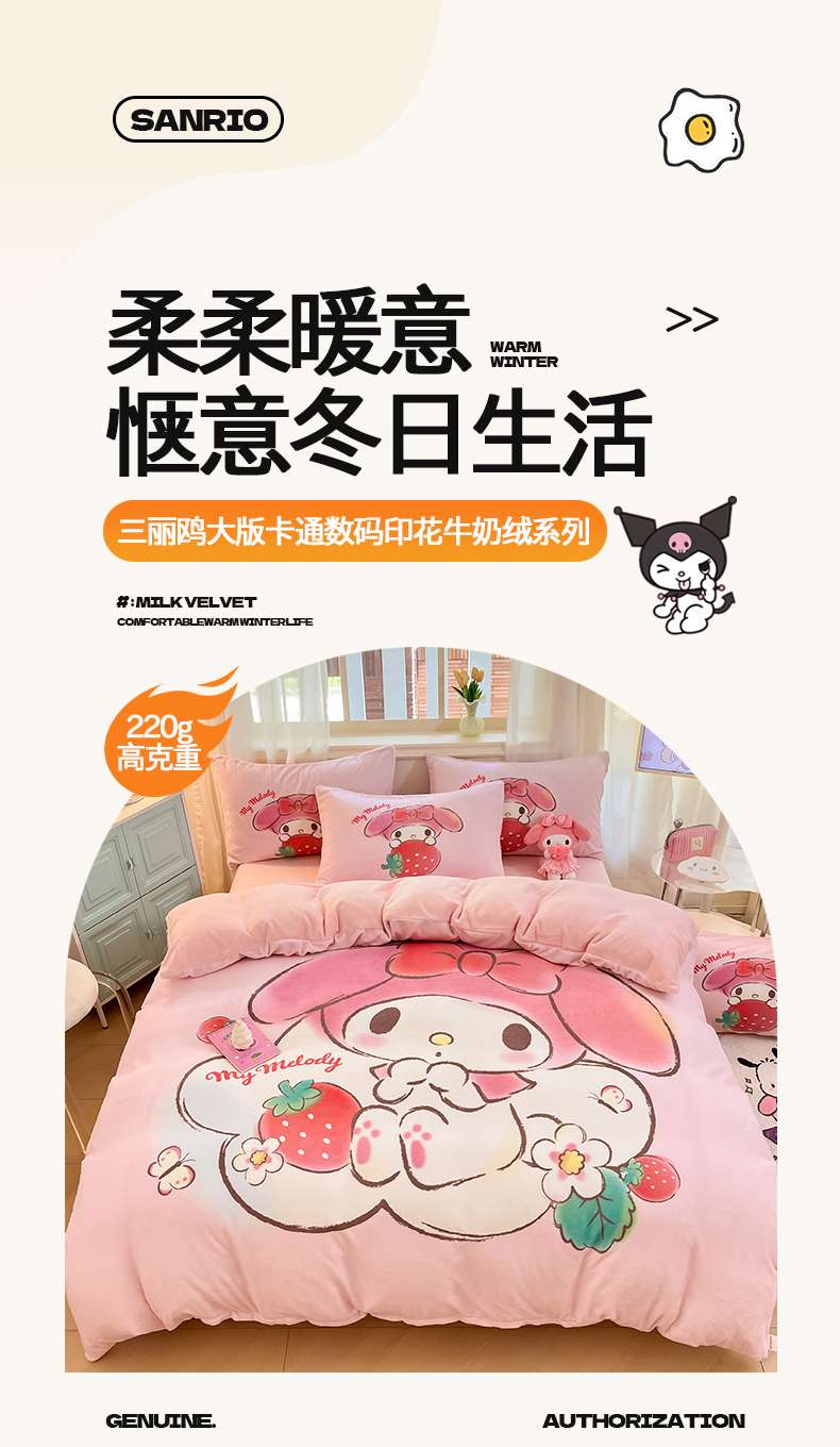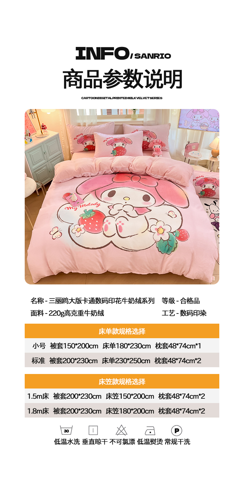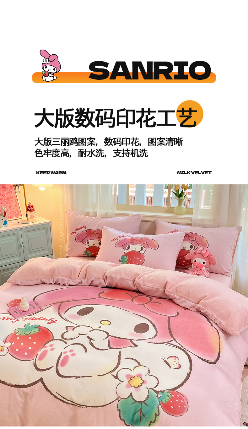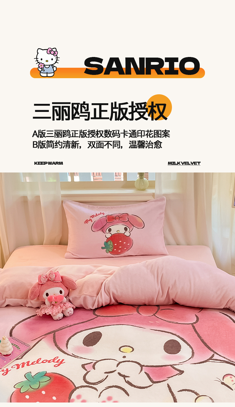 当前位置: 91家纺网 > 商品网购 > 床品套件 > 四件套 > 牛奶绒四件套 > 金爱家 2025新款正版三丽鸥授权大版卡通平网数码印花加厚高克重牛奶绒系列四件套-第一批 绒大版-R草莓果汁美乐蒂