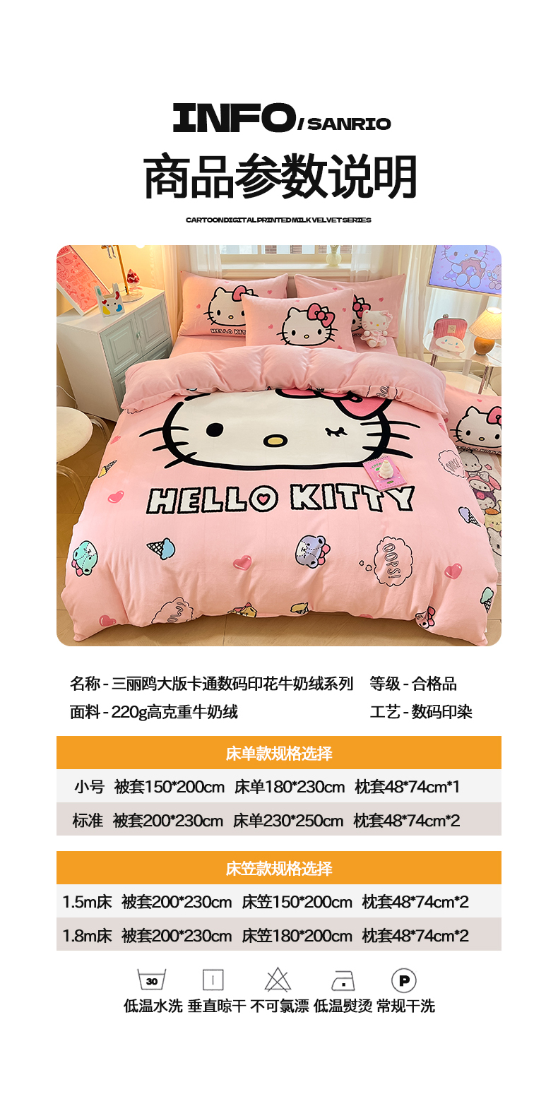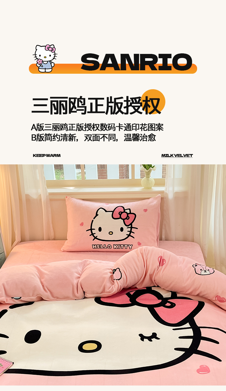 当前位置: 91家纺网 > 商品网购 > 床品套件 > 四件套 > 牛奶绒四件套 > 金爱家 2025新款正版三丽鸥授权大版卡通平网数码印花加厚高克重牛奶绒系列四件套-第一批 绒大版-R美美少女Kitty