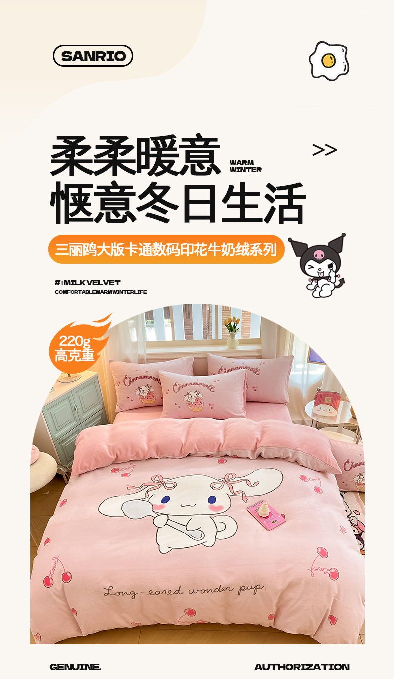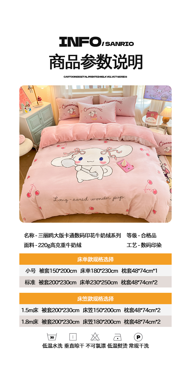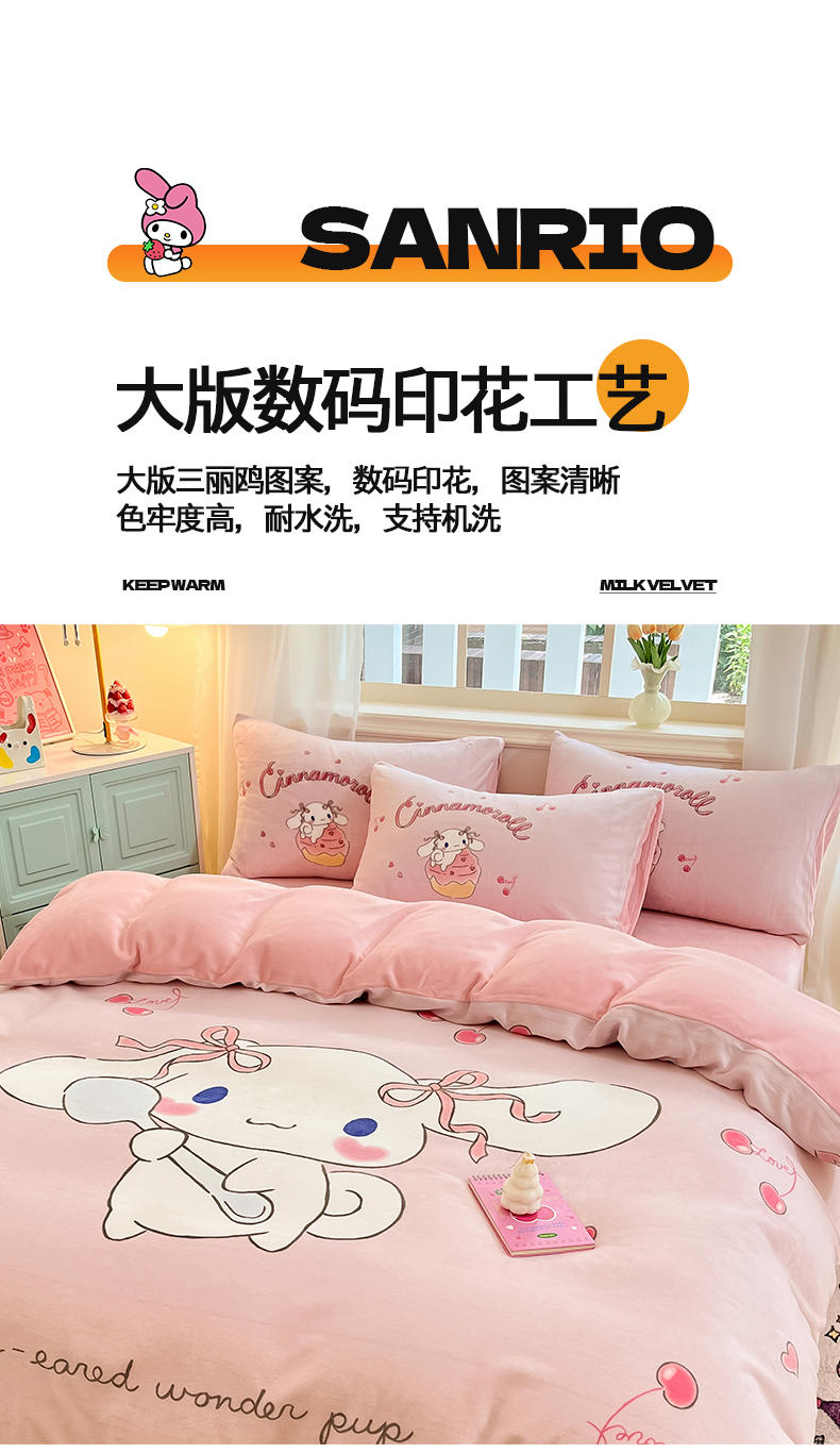 当前位置: 91家纺网 > 商品网购 > 床品套件 > 四件套 > 牛奶绒四件套 > 金爱家 2025新款正版三丽鸥授权大版卡通平网数码印花加厚高克重牛奶绒系列四件套-第一批 绒大版-R樱桃美美大耳狗