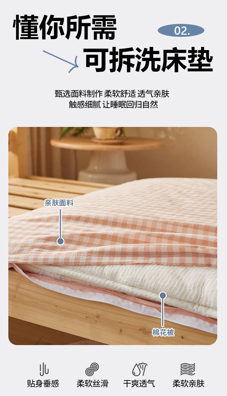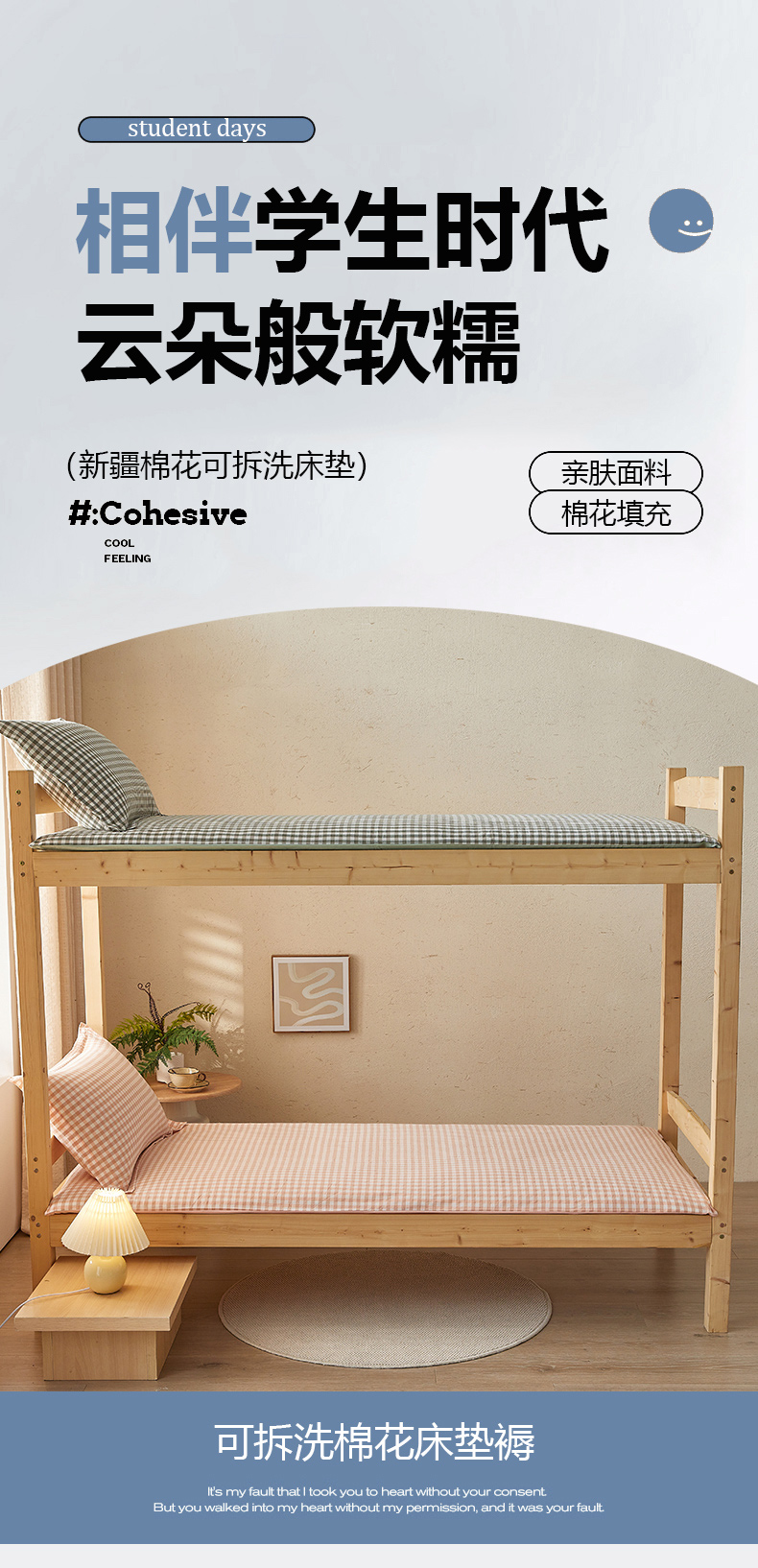 (总)悠米悠家 2025新款新疆棉花学生款可拆洗床垫,宾利兰格,高级灰格,格子控,灰色,极简绿格,简兮格,橘色小格,蓝小格,墨绿小格