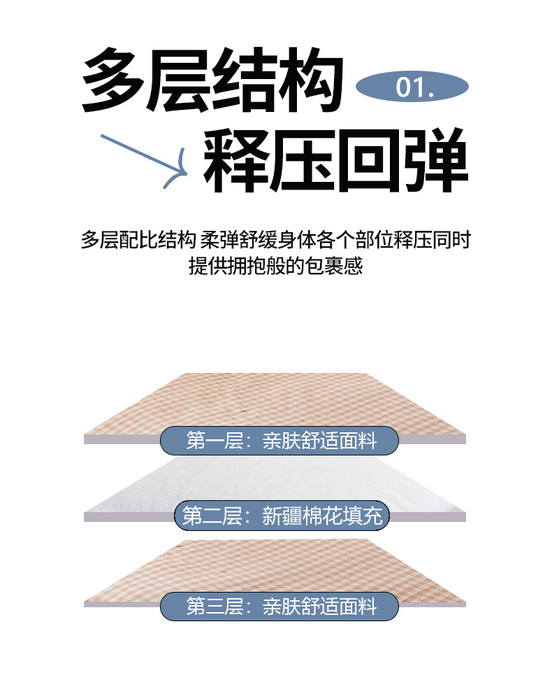 (总)悠米悠家 2025新款亲肤加厚棉花夹棉床褥,白色,粉色,灰色,蓝色