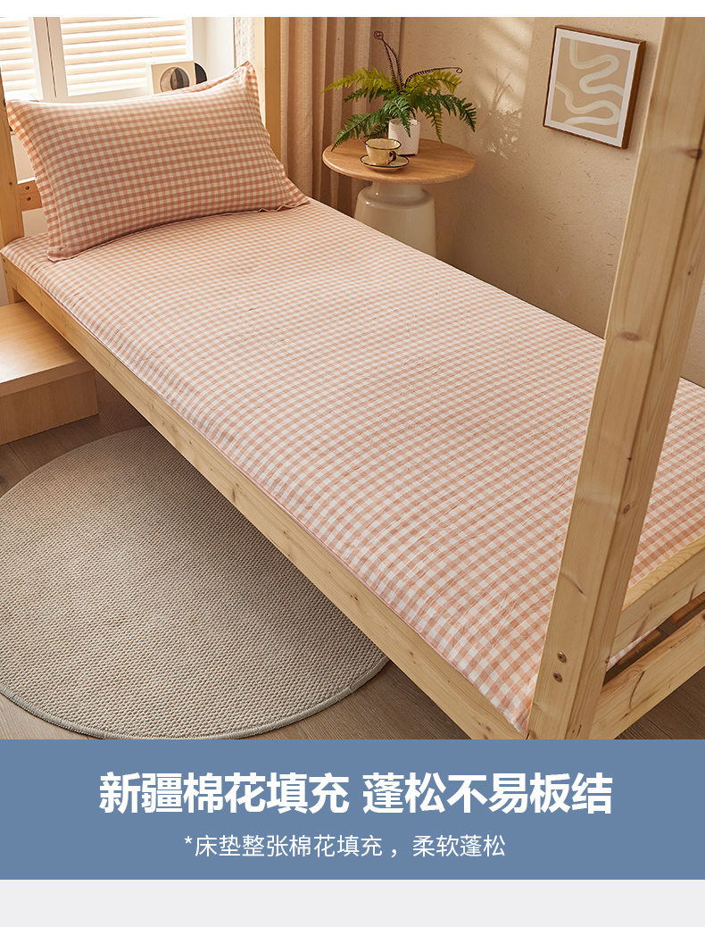 商品名称:悠米悠家 2025新款新疆棉花学生款可拆洗床垫 粉小格