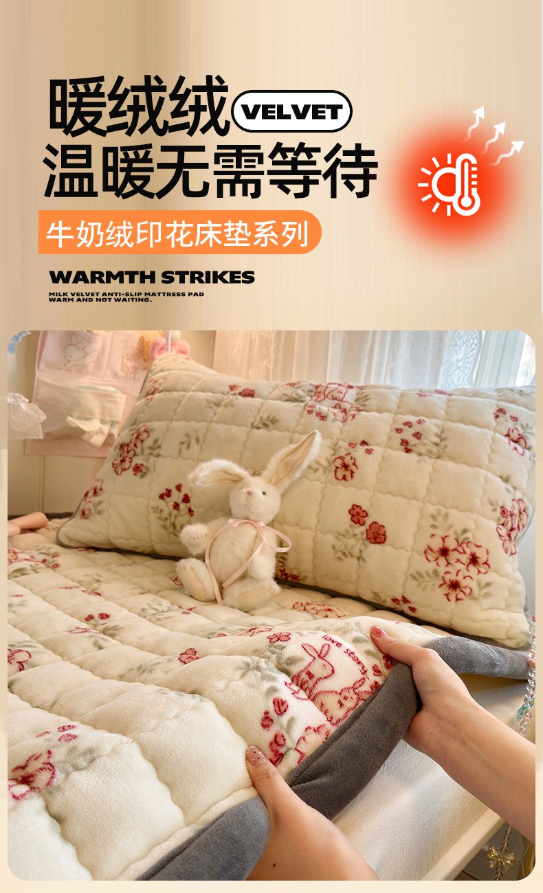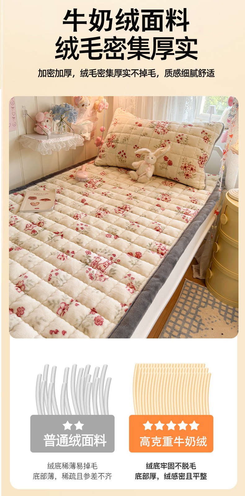 • 91家纺网 家纺一手货源 找家纺 韩巢家纺 冬季高低床2025款牛奶绒水晶边床垫床护垫学生床褥子宿舍寝室床褥铺底 水晶边-两小无猜
