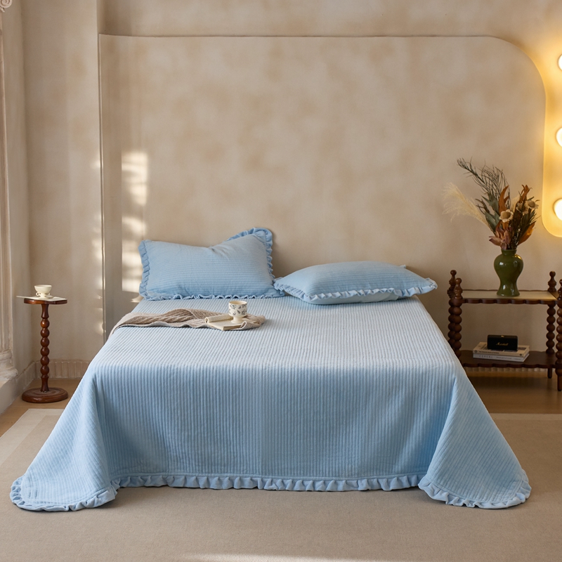 安莱生活 2025年秋冬新品200克牛奶绒花边床盖单品床盖床盖单件 豆绿