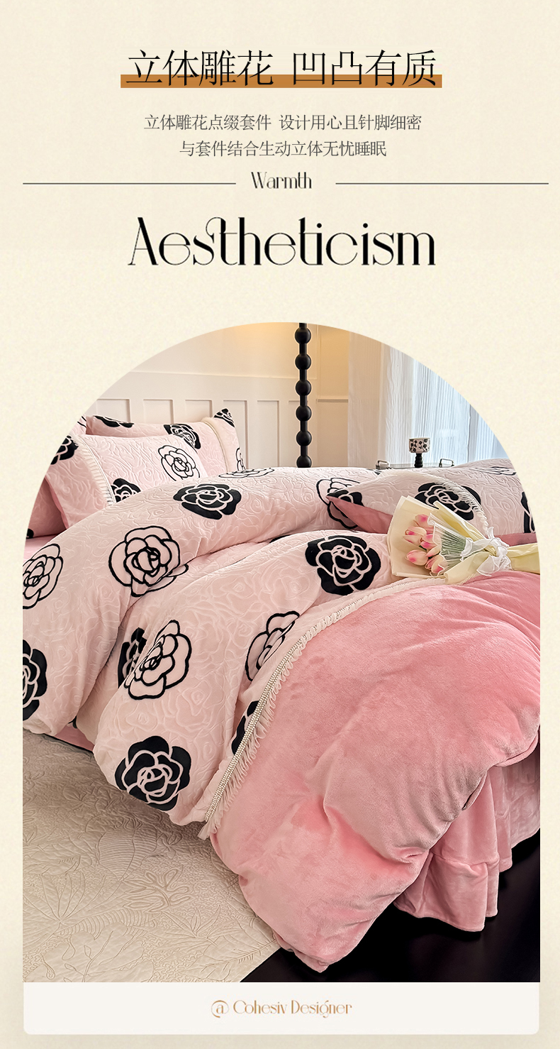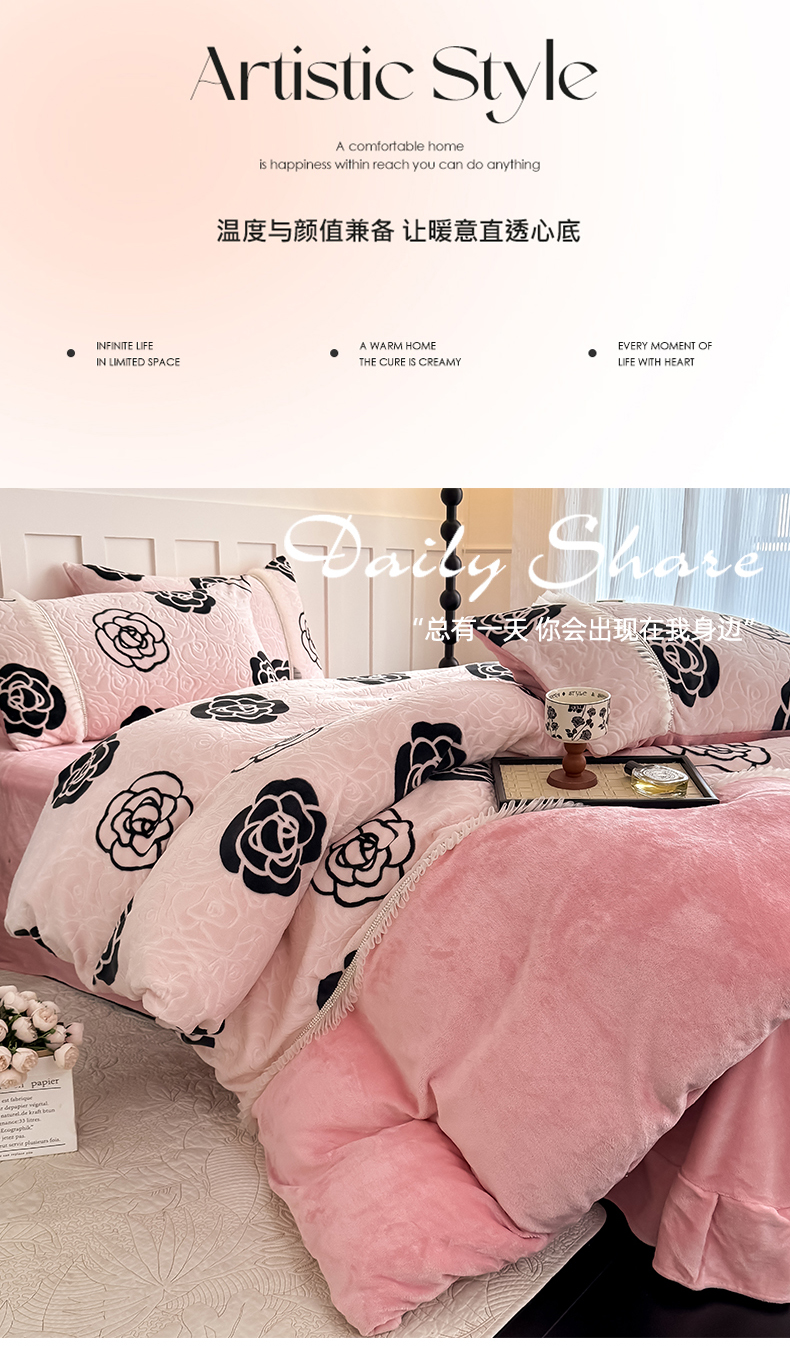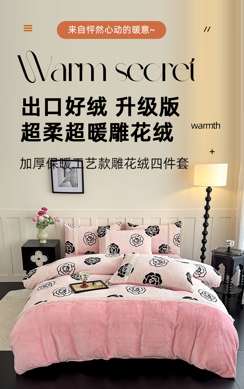 (总)【苏东来】2025高端加厚保暖纯色甜美公主赫本风法式工艺款雕花牛奶绒四件套清新少女婴儿法莱兔绒四件套,蝶恋花,繁花,花香,玫瑰花,一枝花,华尔兹粉,华尔兹卡其,华尔兹水绿,华尔兹天蓝,山茶花,蝴蝶花,梦蝶,如意结,飞舞少女,满天星粉,满天星卡其,满天星水绿