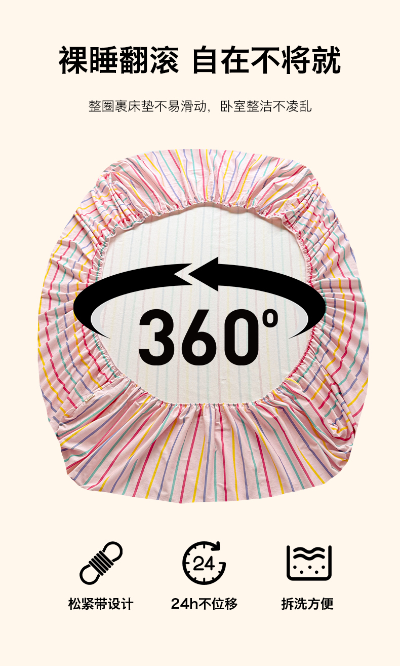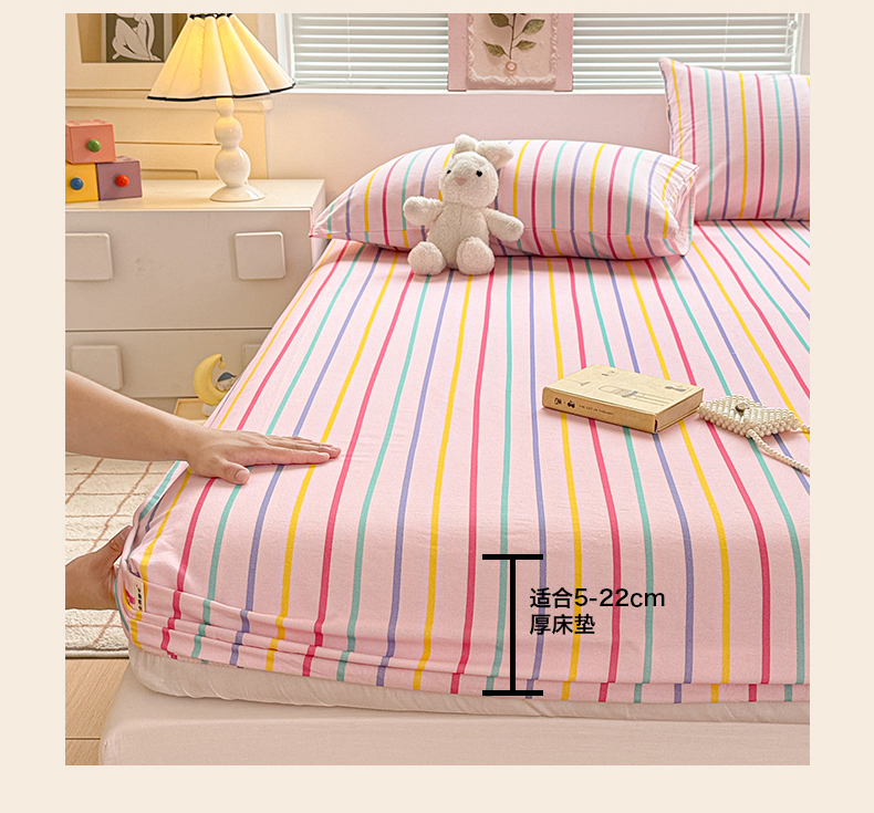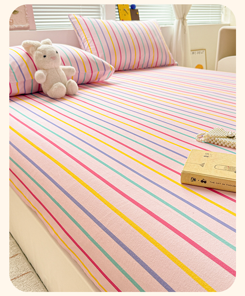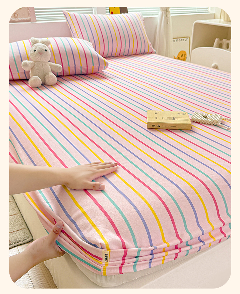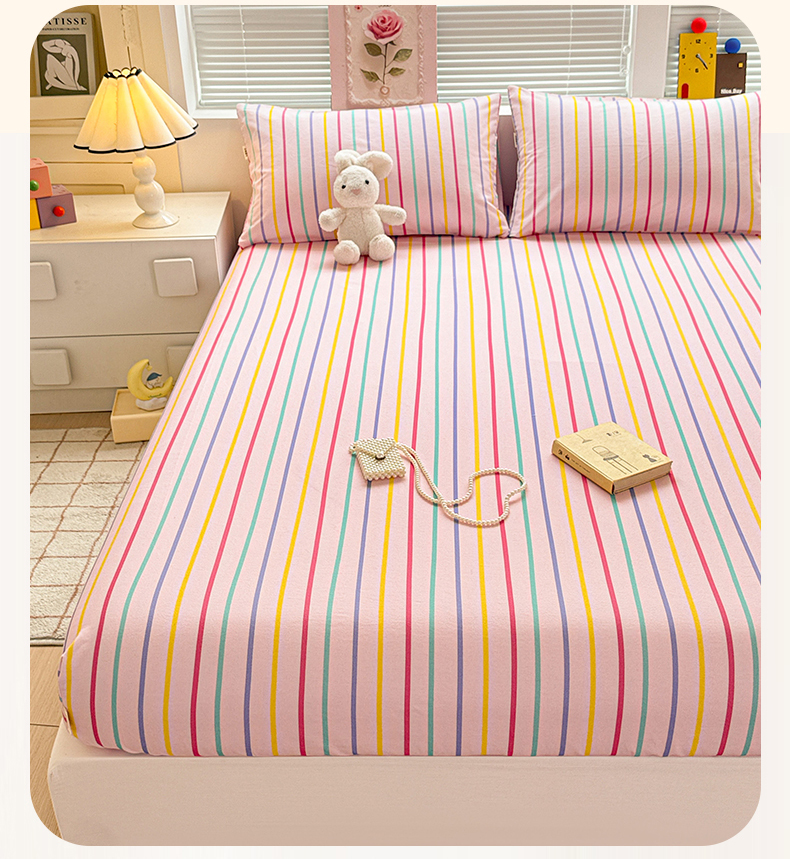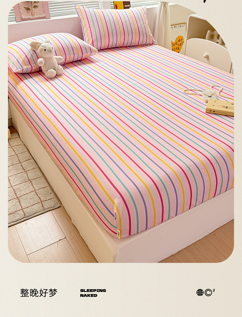 名兮家居 2025新款亲肤舒适全棉纯棉磨毛印花床笠单床笠单品床笠单件床笠 炫彩条纹