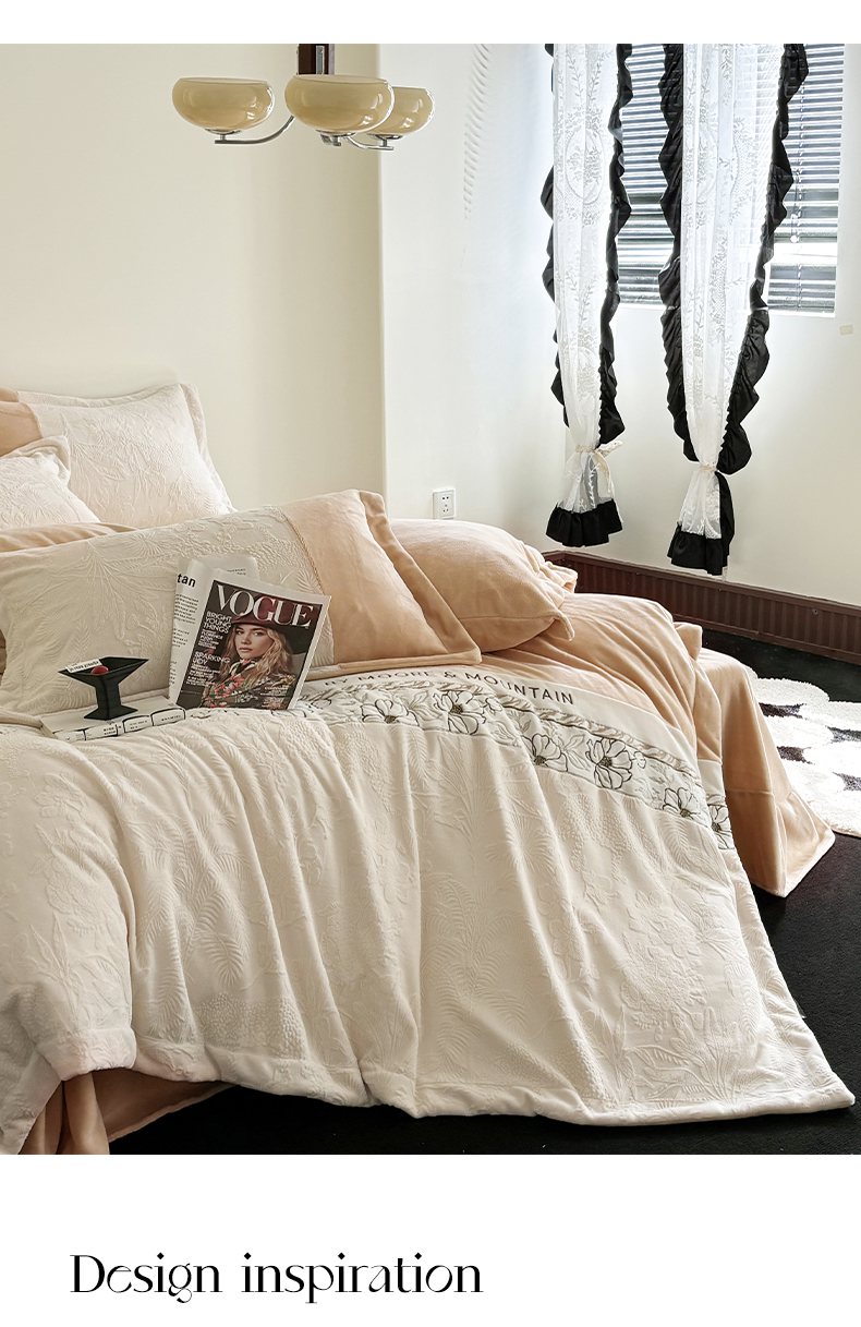 居易简 2025新款法式轻奢全消光牛奶绒雕花拼接刺绣四件套-丛林猎豹(含无纺布包装) 丛林猎豹-奶油粉