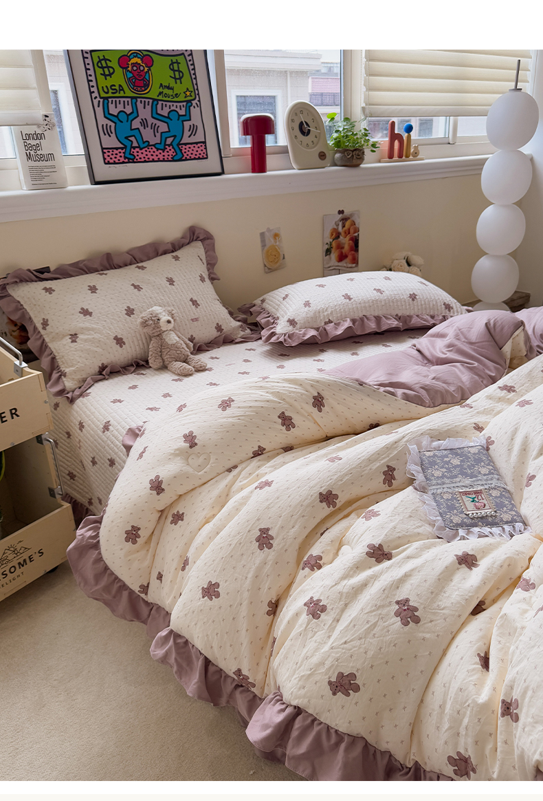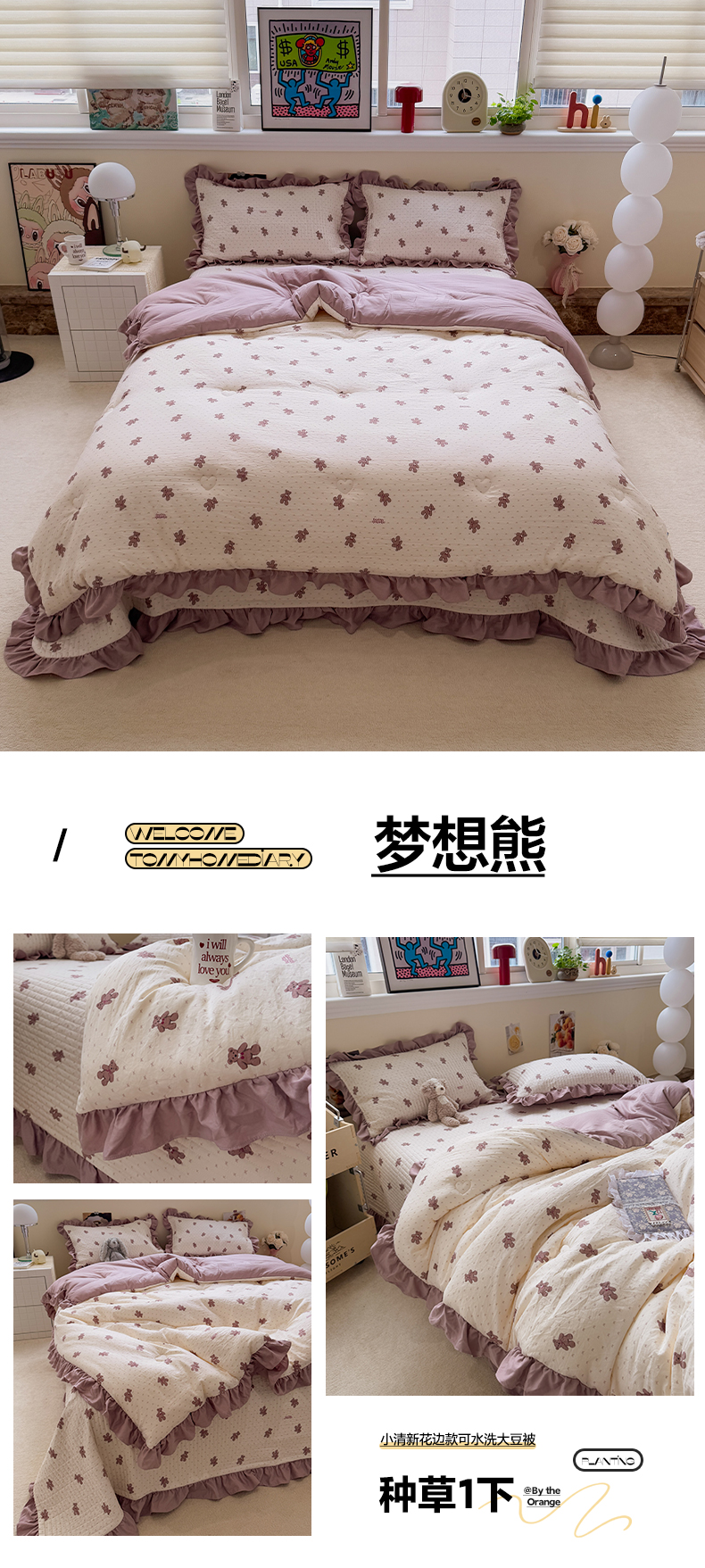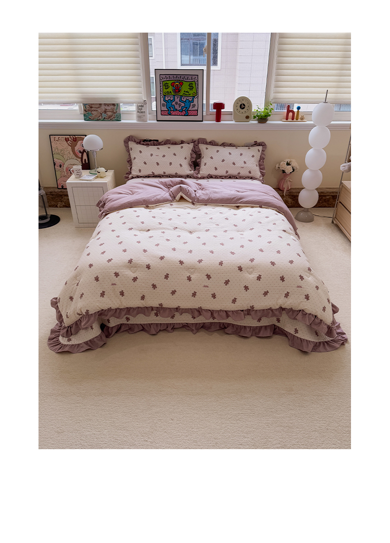 • 91家纺网 家纺一手货源 找家纺 一加一 2025新款小清新花边款可水洗大豆被子被芯 梦想熊