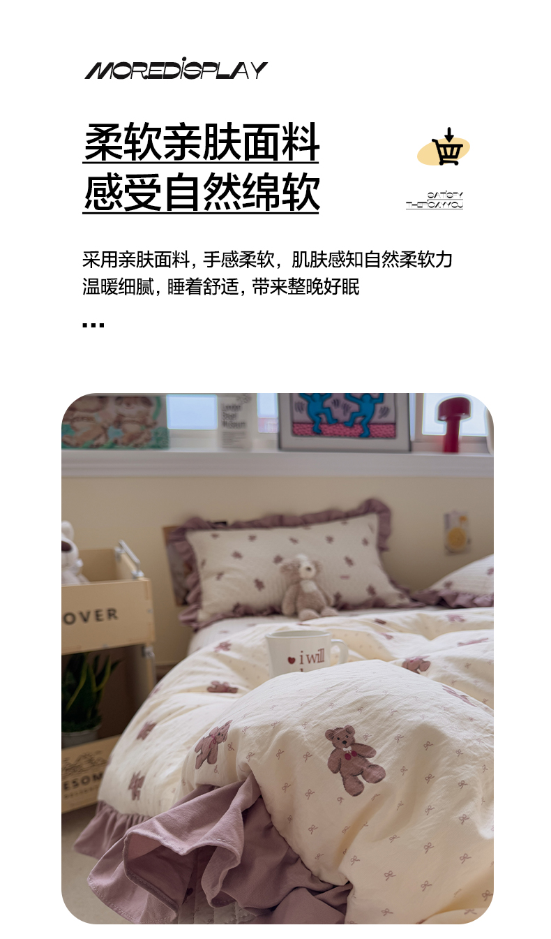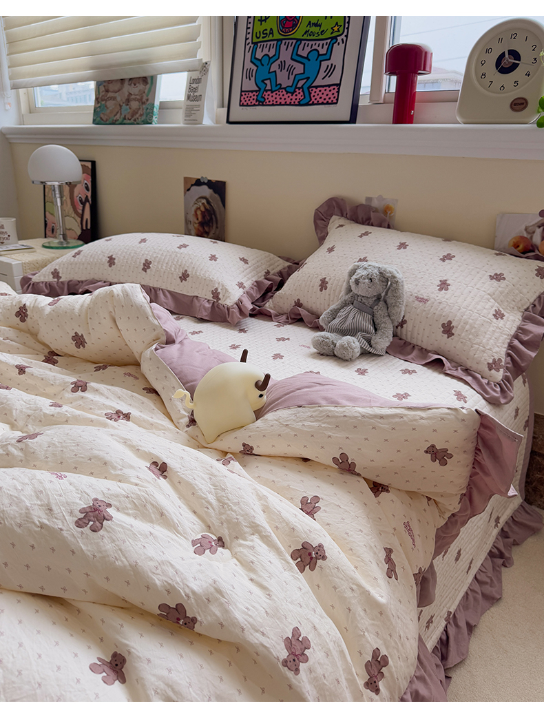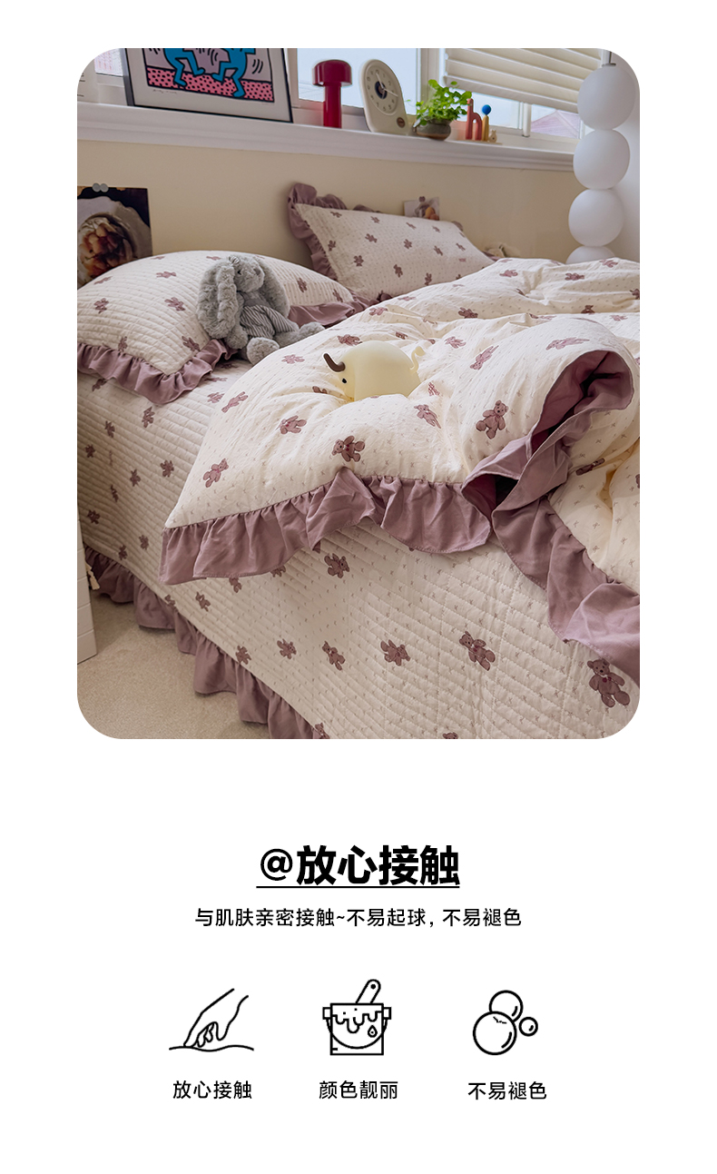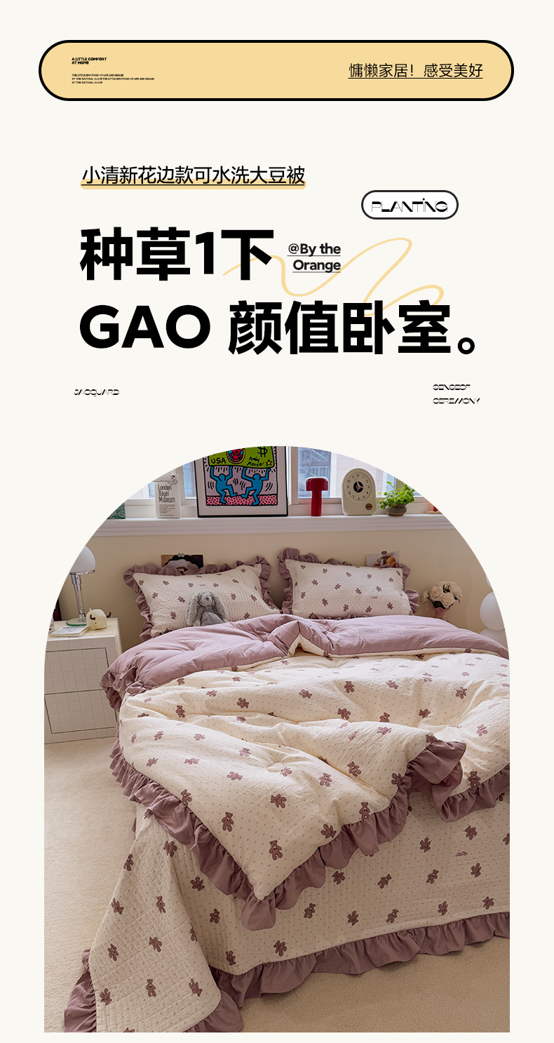 • 91家纺网 家纺一手货源 找家纺 一加一 2025新款小清新花边款可水洗大豆被子被芯 梦想熊