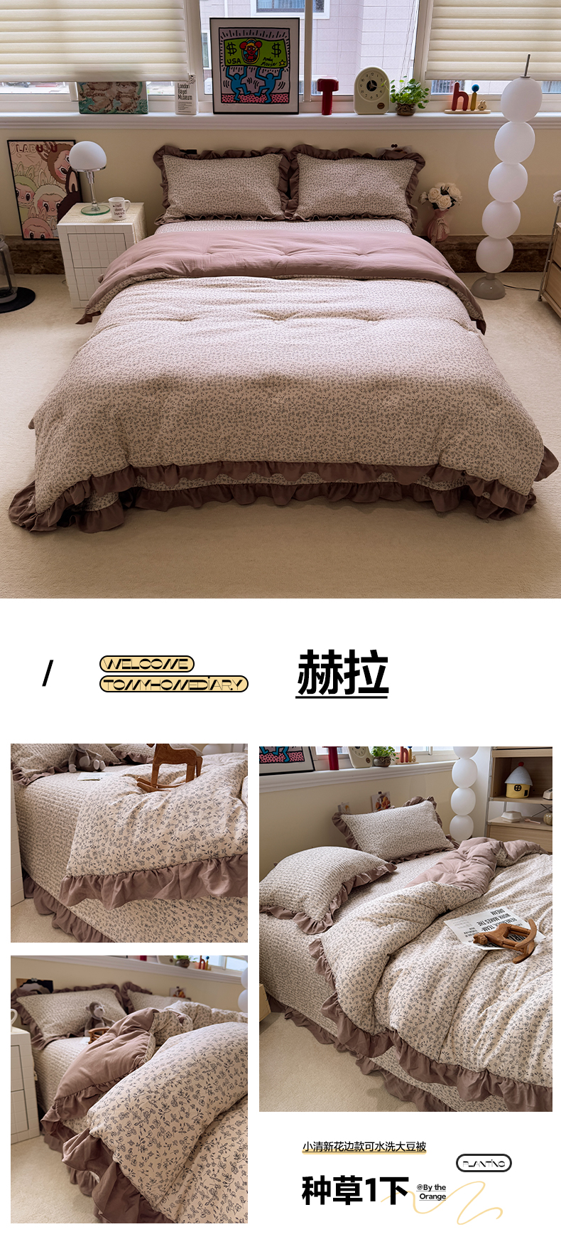 (总)一加一 2026新款洛卡棉印花大豆夏被四件套,白瓷花絮,彩色萝卜,彩色甜梦,粉紫花序,奶芙腊肠狗,南瓜兔派对,浅蓝甜梦,青禾随影,软心小狗,元气小果,紫樱奶芙