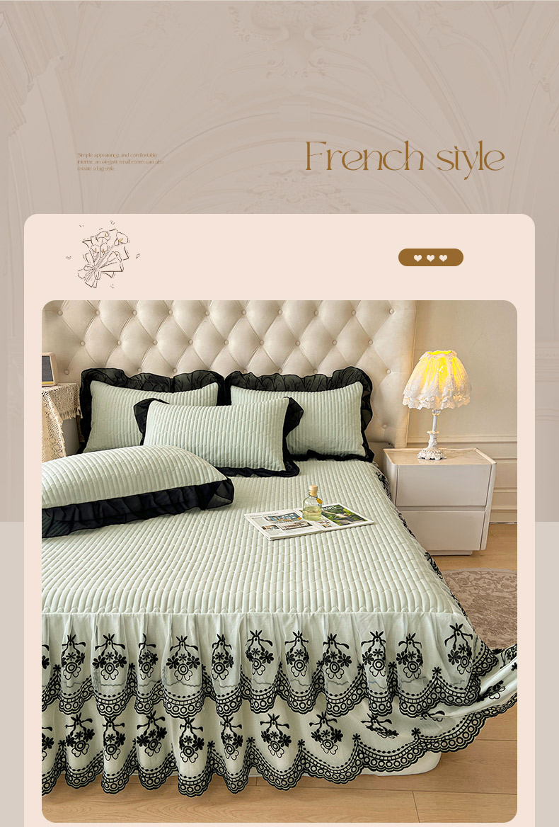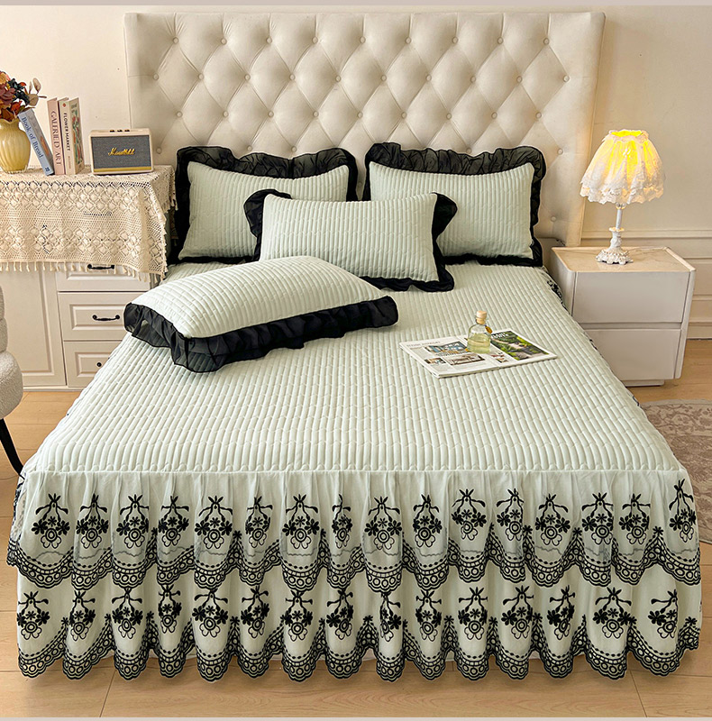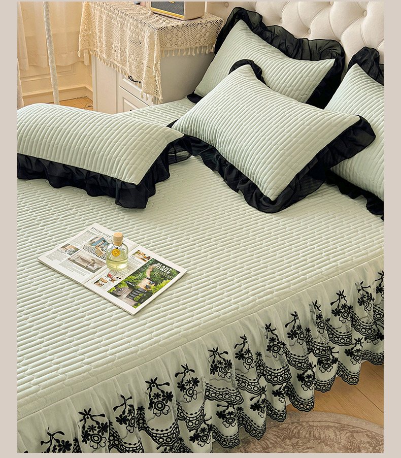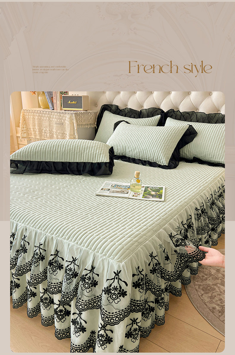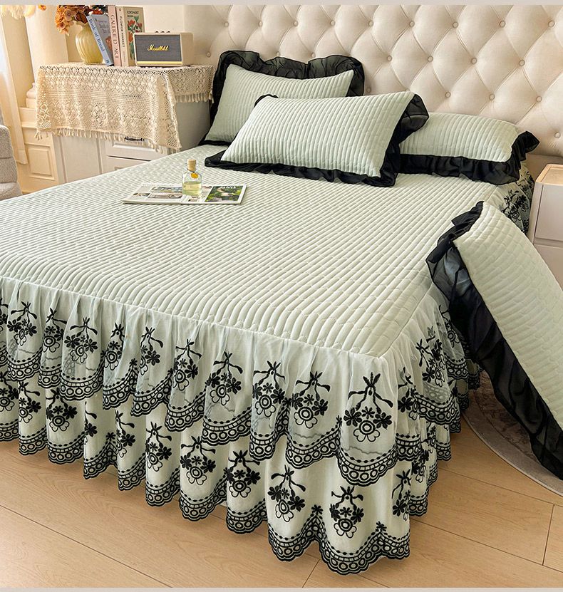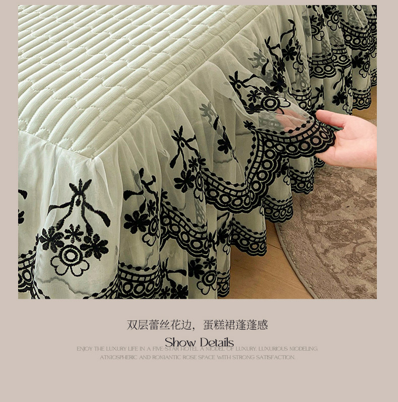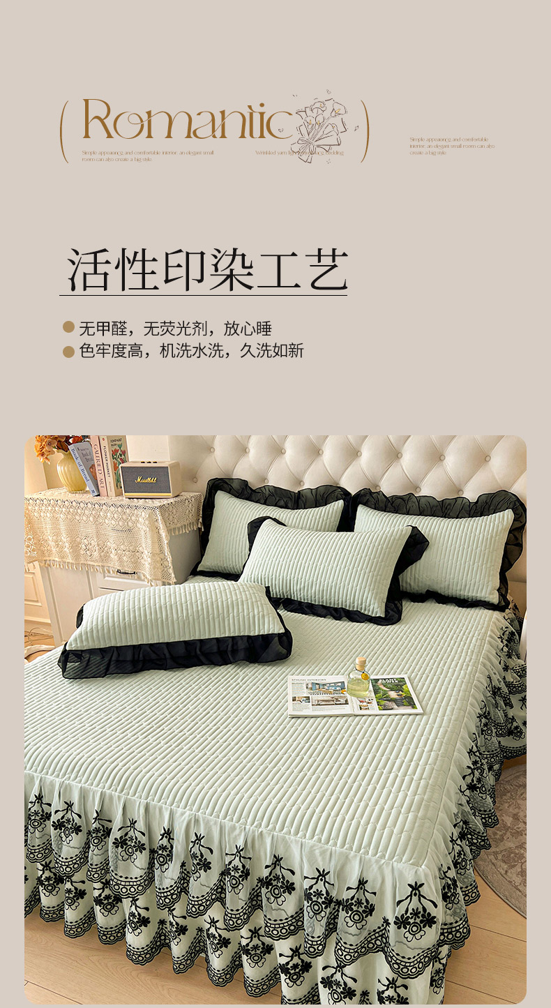鼎丰家纺 2025新款皱皱纱双层花边夹棉床裙单床裙床裙单品-梦想系列 梦想-嫩绿