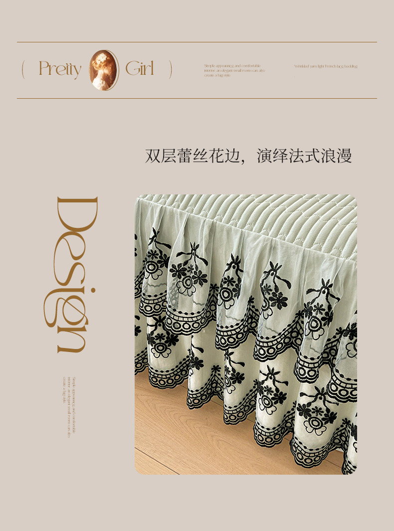 • 91家纺网 家纺一手货源 找家纺 (总) 鼎丰家纺 2025新款法式浪漫花边皱皱纱床盖四件套,蔷薇-摩卡棕,蔷薇-桃花粉,蔷薇-牛奶白,蔷薇-云雾灰,蔷薇-清洗绿