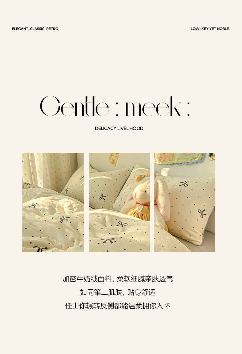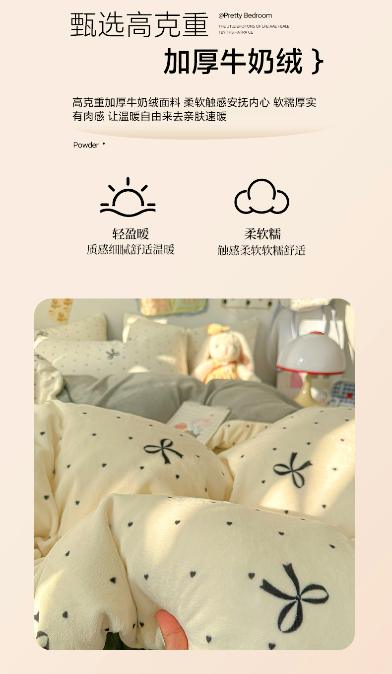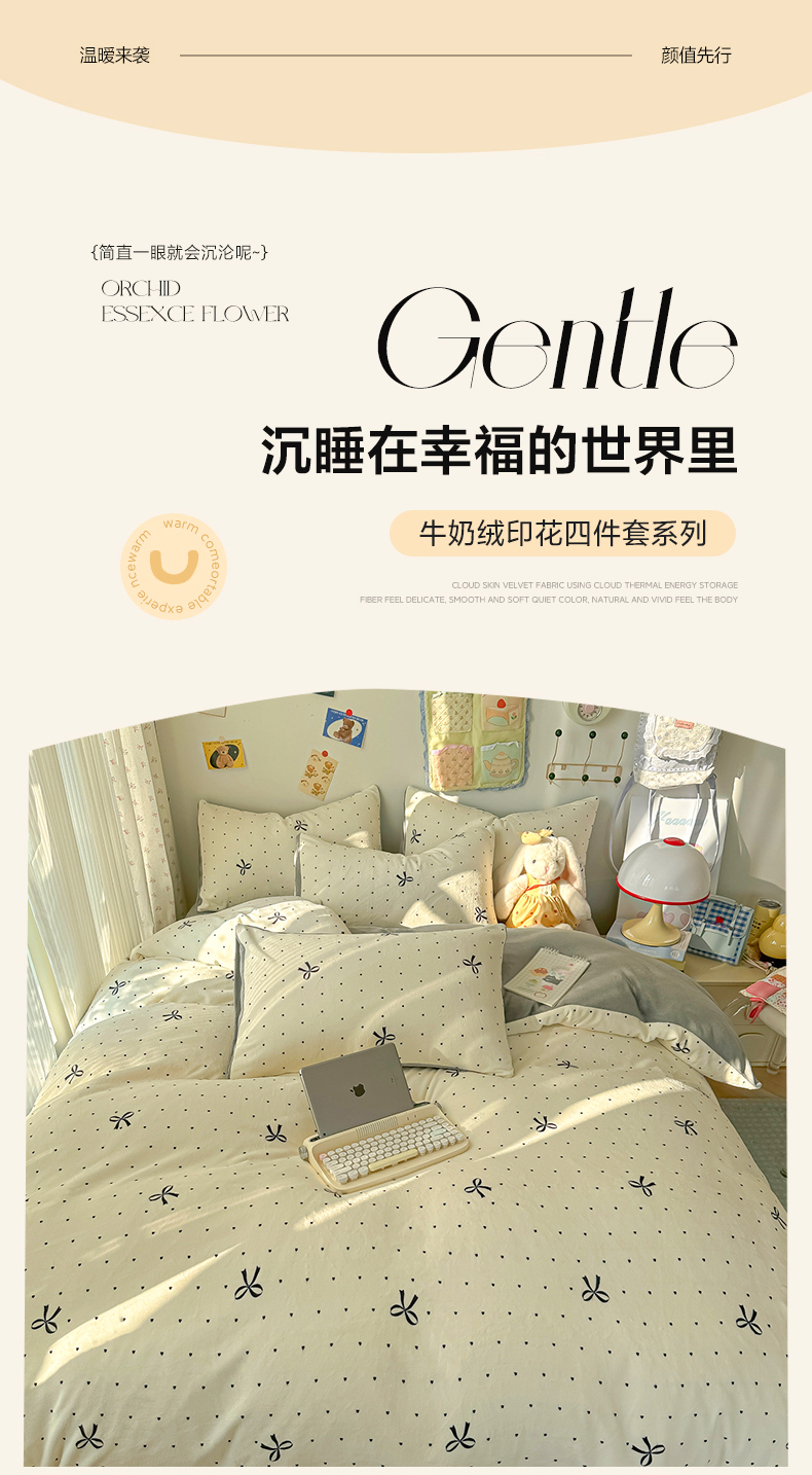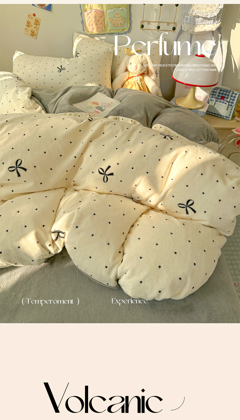 当前位置: 91家纺网 > 商品网购 > 床品套件 > 四件套 > 牛奶绒四件套 > 韩巢家纺 2025新款高克重牛奶绒四件套冬季绒床品被套床单三件套 蝴蝶点点心