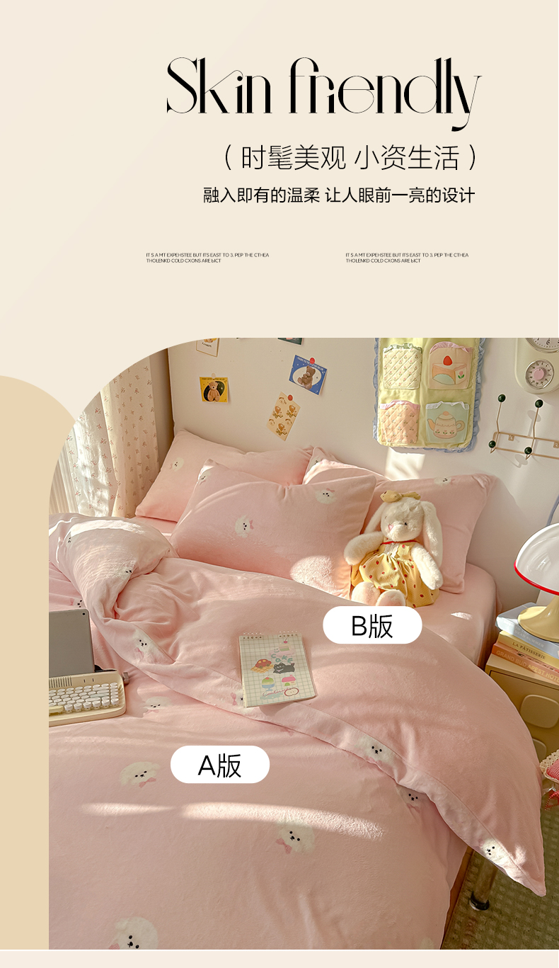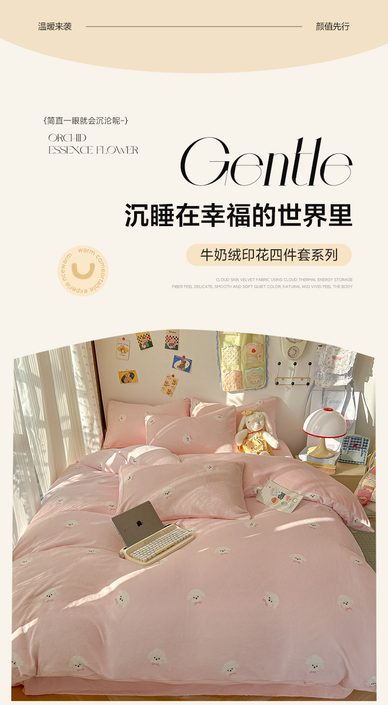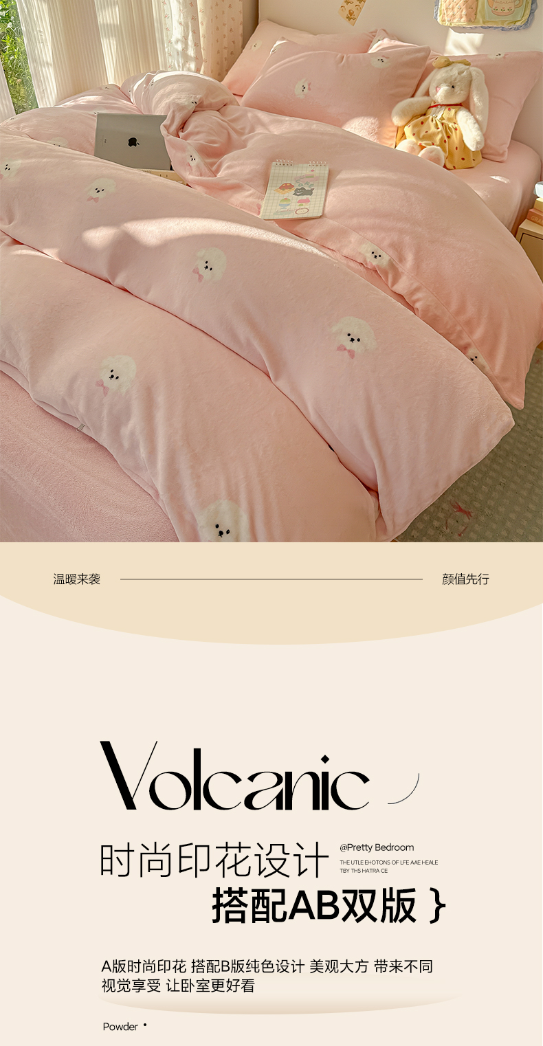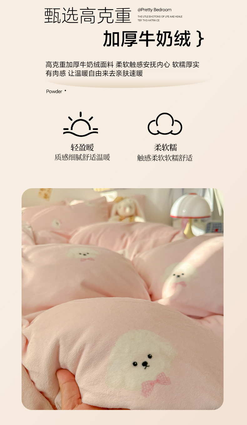当前位置: 91家纺网 > 商品网购 > 床品套件 > 四件套 > 牛奶绒四件套 > 韩巢家纺 2025新款高克重牛奶绒四件套冬季绒床品被套床单三件套 绒绒小狗-粉