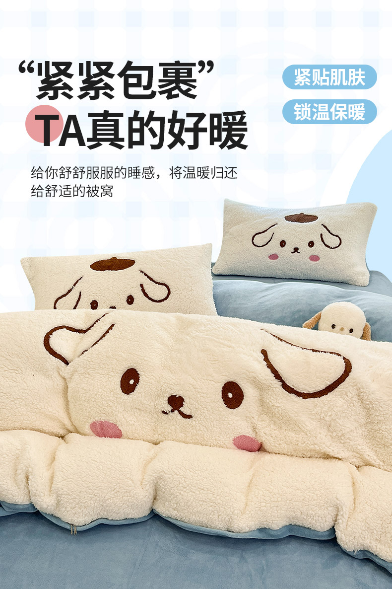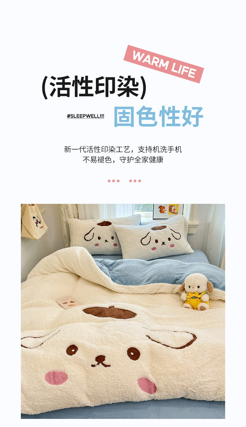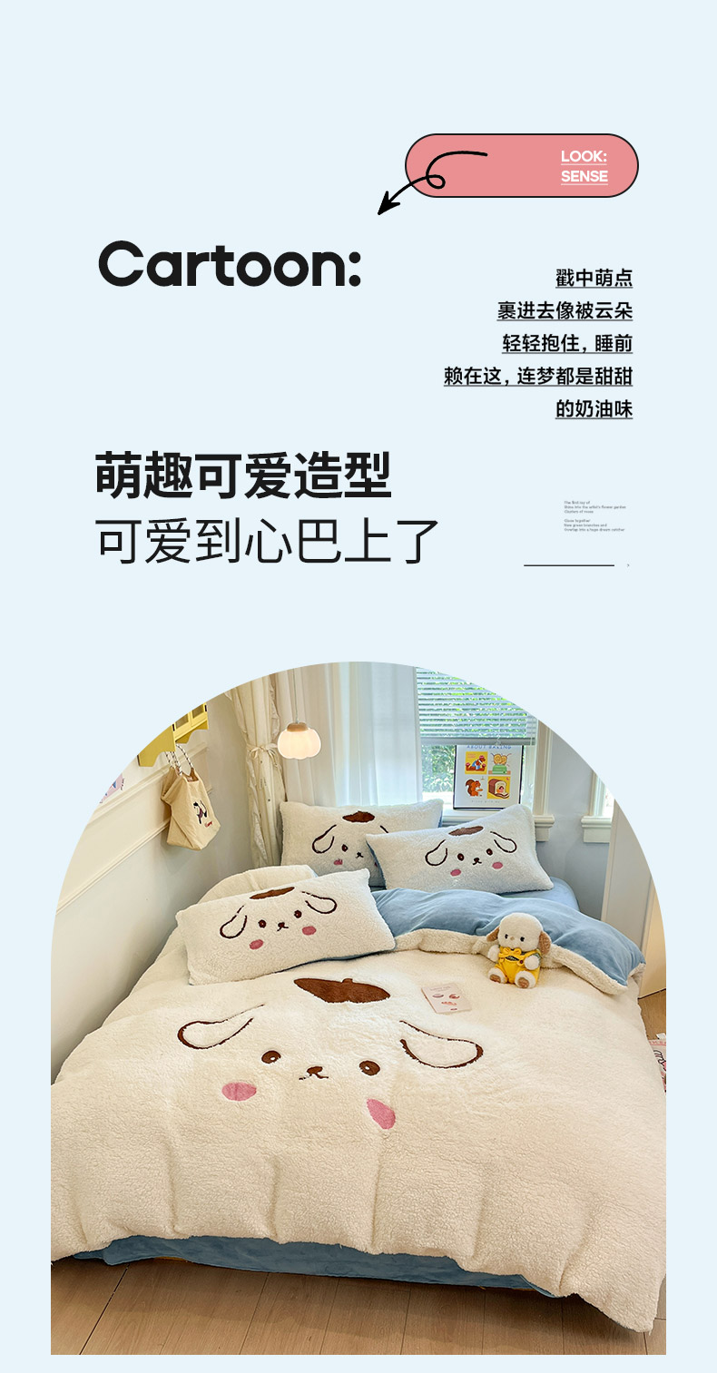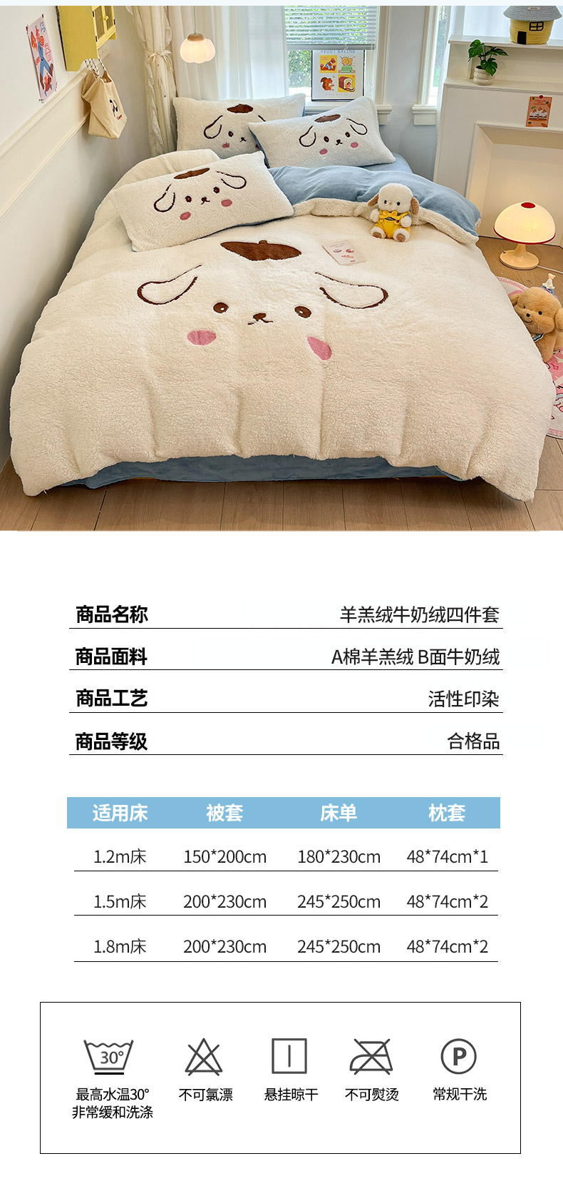 商品名称:乐坊 2025新款大阪羊羔绒牛奶绒卡通四件套冬季加厚保暖 晚安狗-白蓝