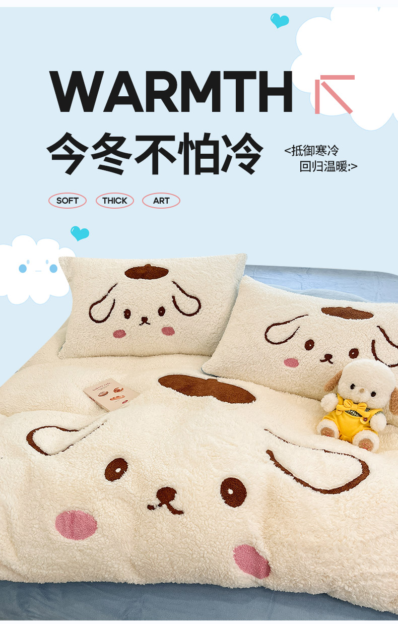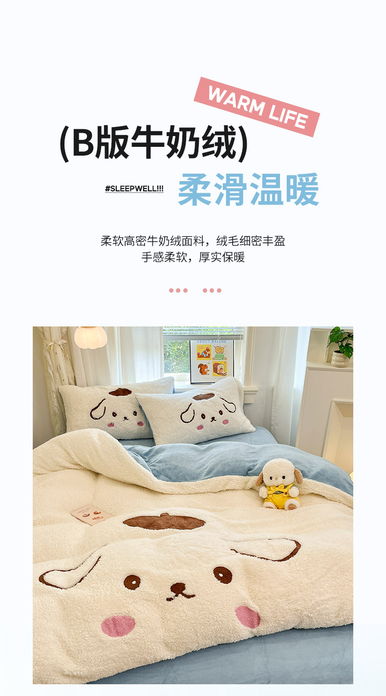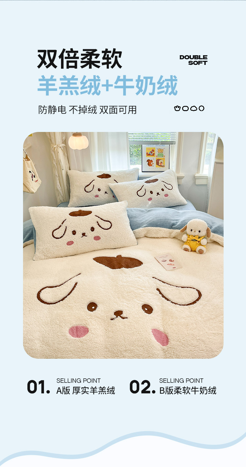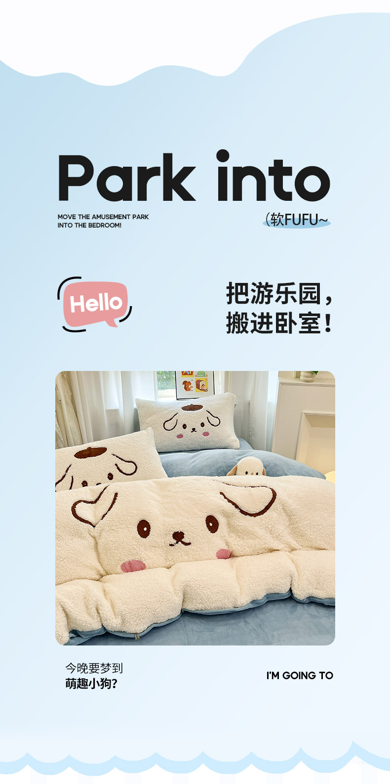 商品名称:乐坊 2025新款大阪羊羔绒牛奶绒卡通四件套冬季加厚保暖 晚安狗-白蓝