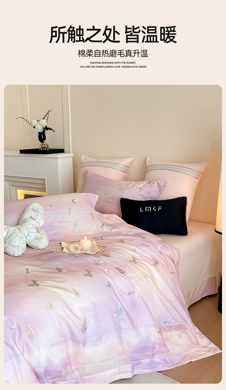 (总)蓝米卡夫 2025秋冬-A类全棉100支磨毛印+绣-云光蝶梦系列(礼盒包装)-拍摄风格2 提供买家秀