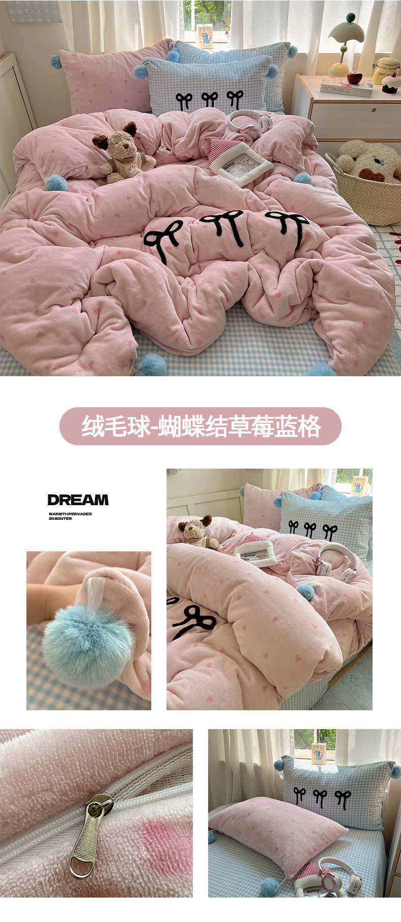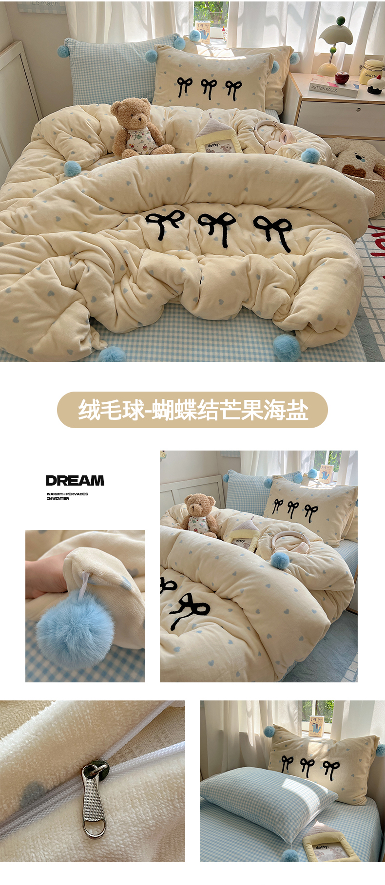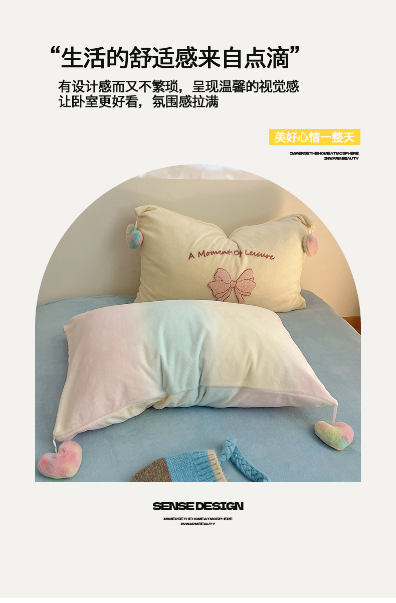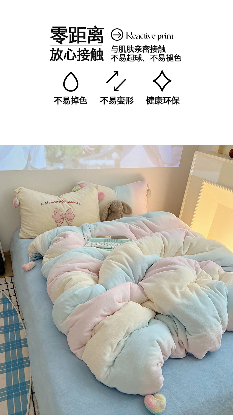 当前位置: 91家纺网 > 商品网购 > 床品套件 > 四件套 > 牛奶绒四件套 > 桃子家居 2025新款insA类少女甜心毛球混搭工艺蝴蝶结刺绣毛巾绣印花加厚牛奶绒四件套 绒毛球-蝴蝶结渐变粉蓝黄