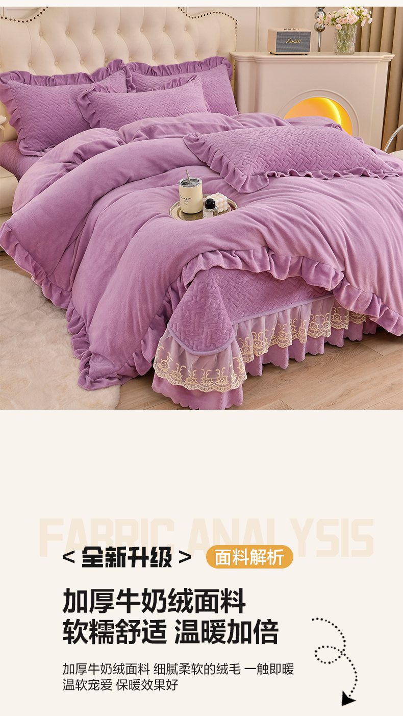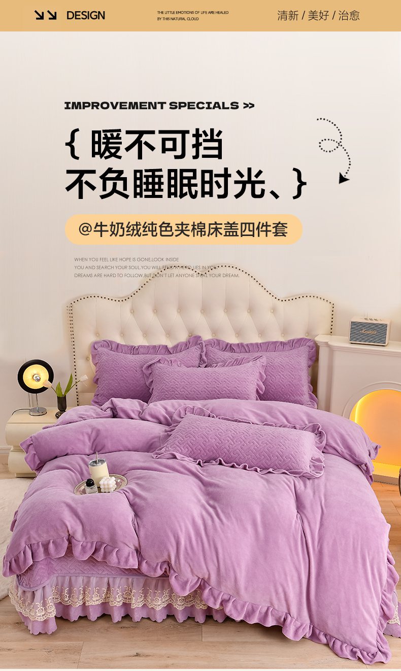 畅畅家纺 2025新款11斤秋冬加厚纯色韩版牛奶绒夹棉床盖四件套-倾城 倾城-紫