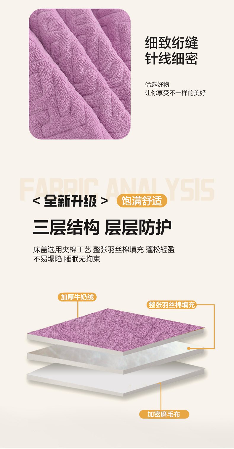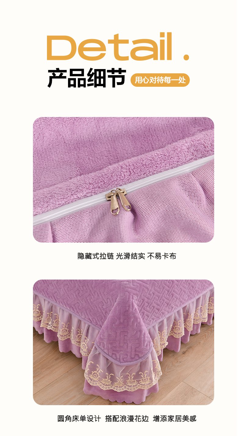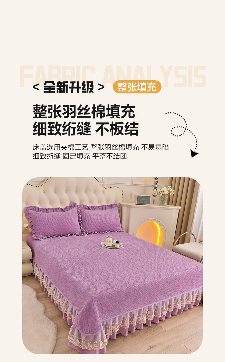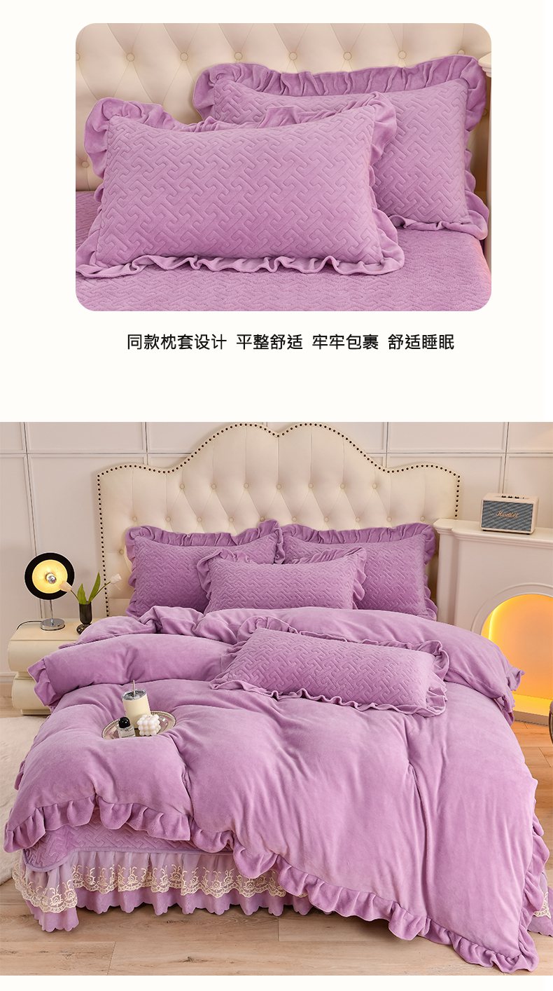 商品名称:畅畅家纺 2025新款11斤秋冬加厚纯色韩版牛奶绒夹棉床盖四件套-倾城 倾城-紫