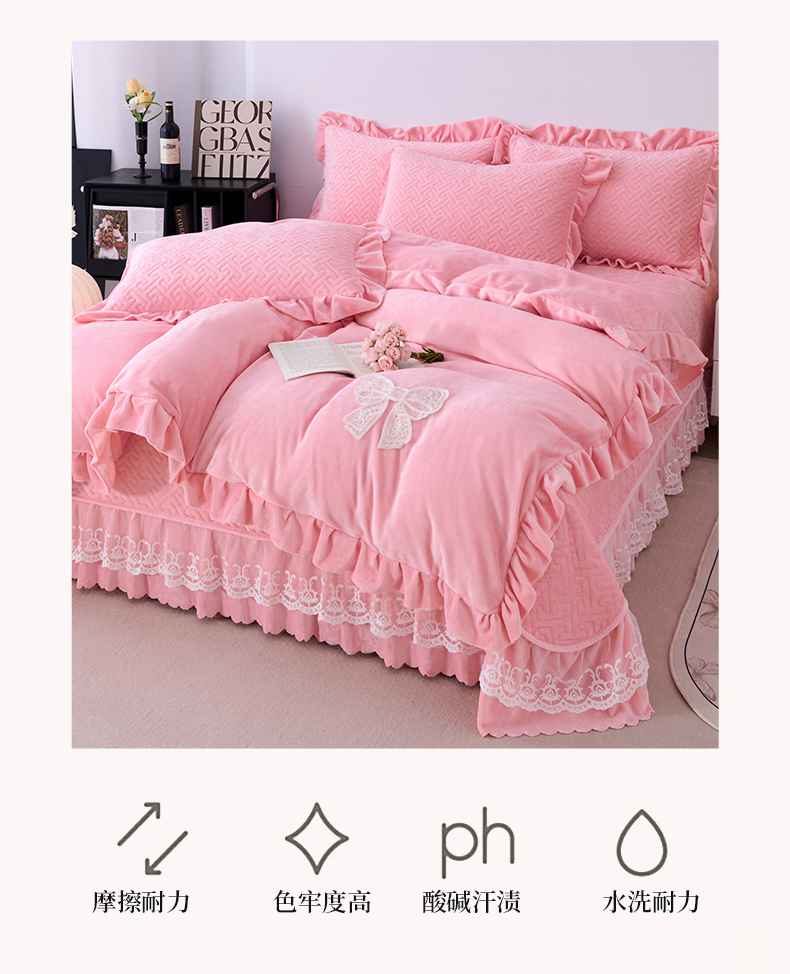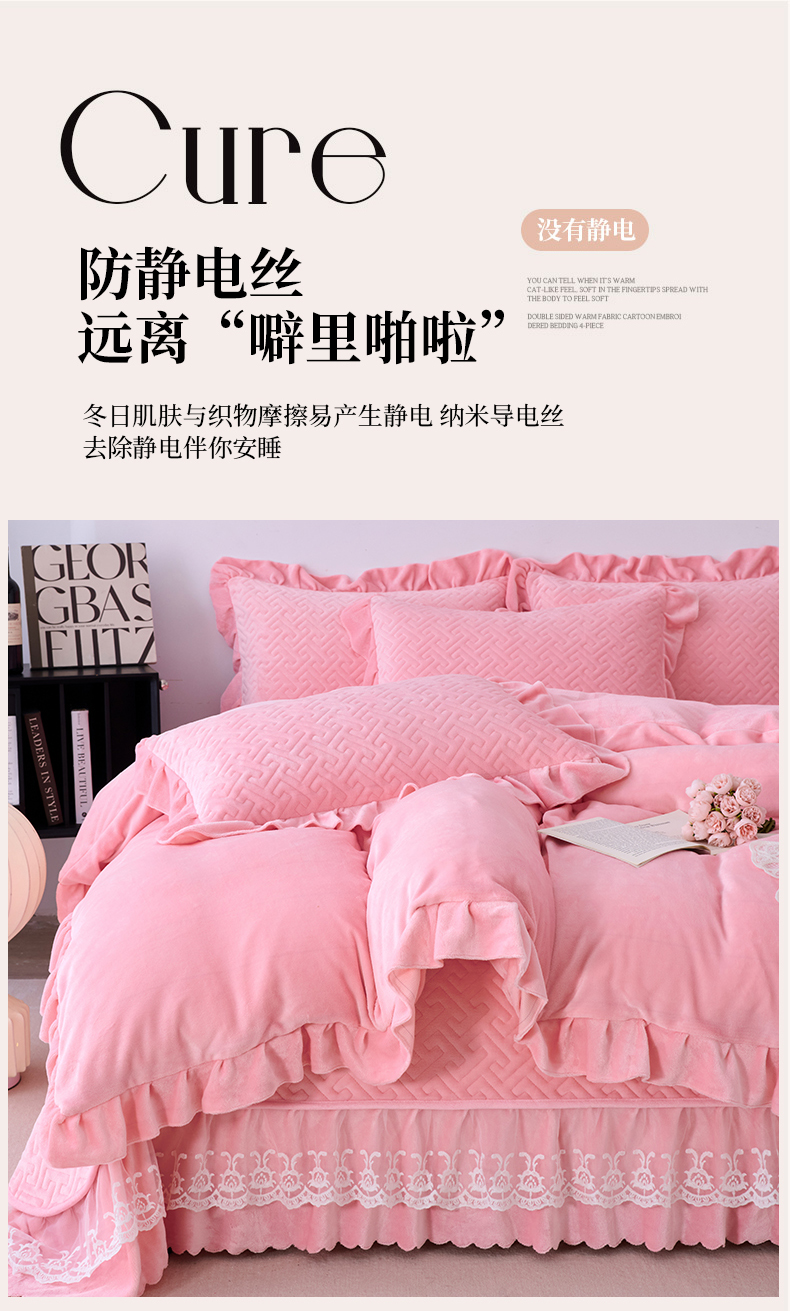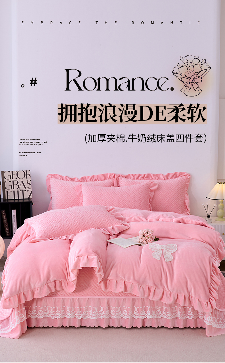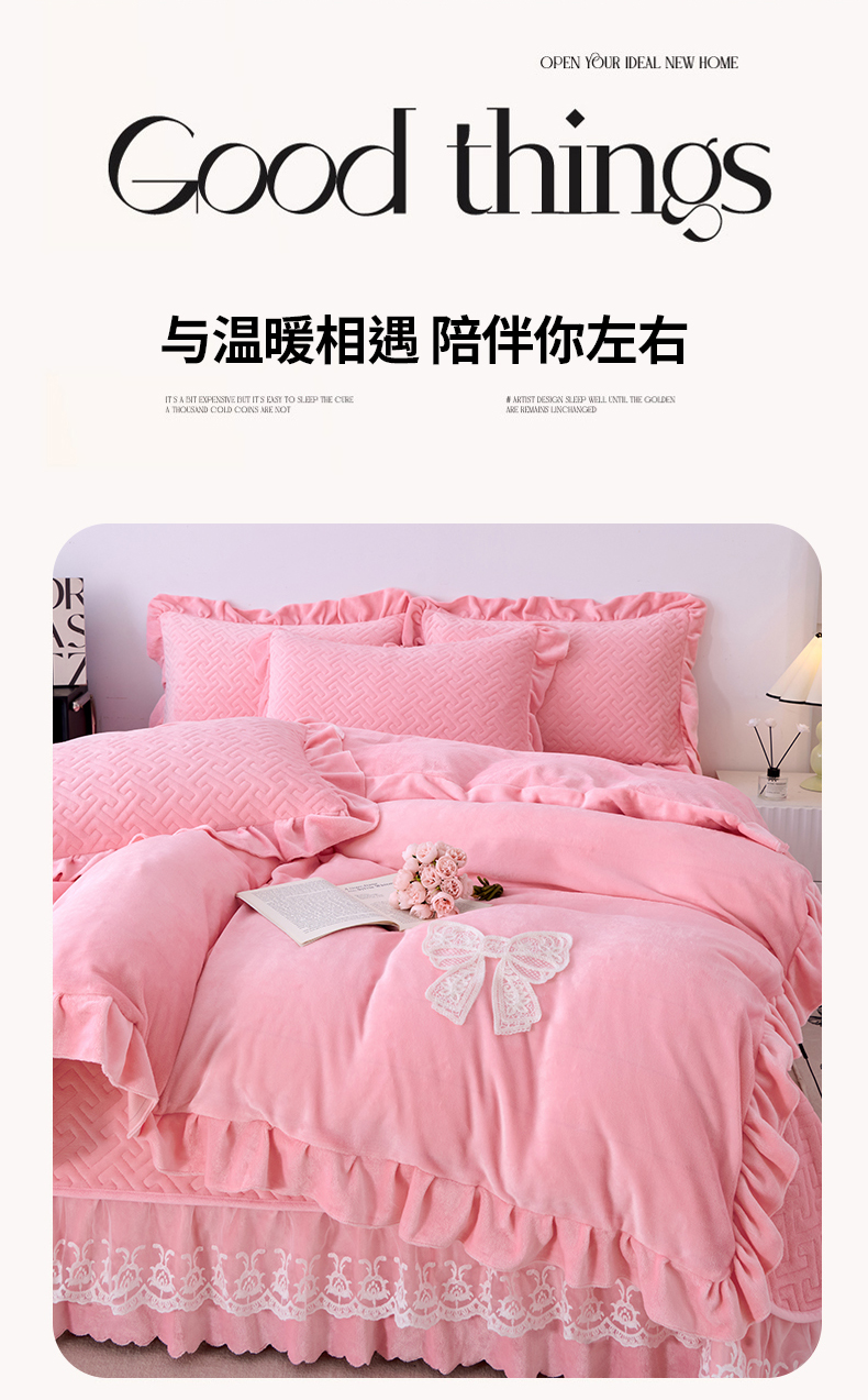 商品名称:畅畅家纺 2025新款11斤韩版冬季超柔加厚牛奶绒蝴蝶花边床盖四件套 桃粉