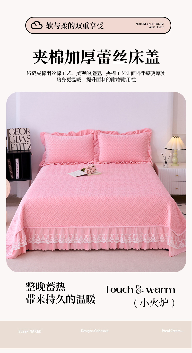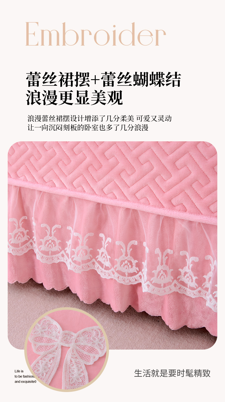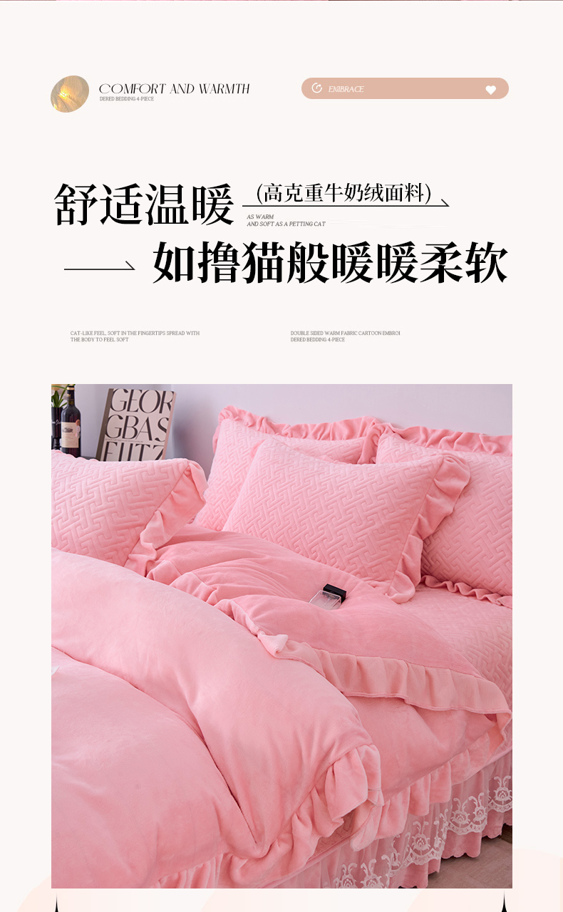 商品名称:畅畅家纺 2025新款11斤韩版冬季超柔加厚牛奶绒蝴蝶花边床盖四件套 桃粉