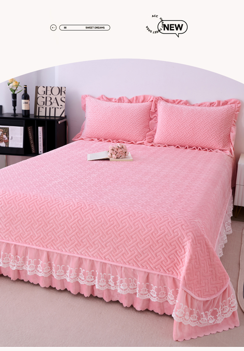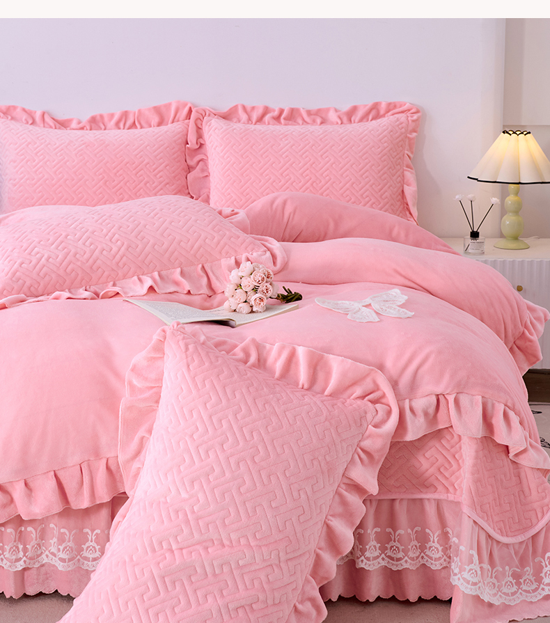 畅畅家纺 2025新款11斤韩版冬季超柔加厚牛奶绒蝴蝶花边床盖四件套 桃粉