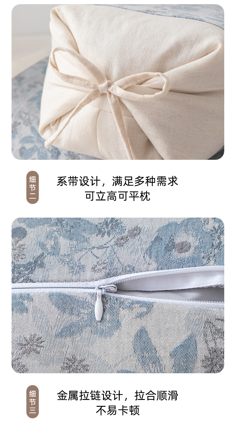 商品名称:大熊枕芯 2025新款国潮棉麻荞麦枕头枕芯 玫瑰-蓝