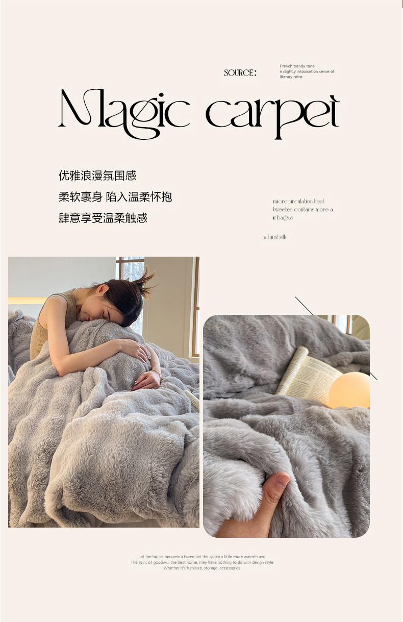曲之慕 2025新款高克重皮草绒牛奶绒兔毛四件套 颜可-灰
