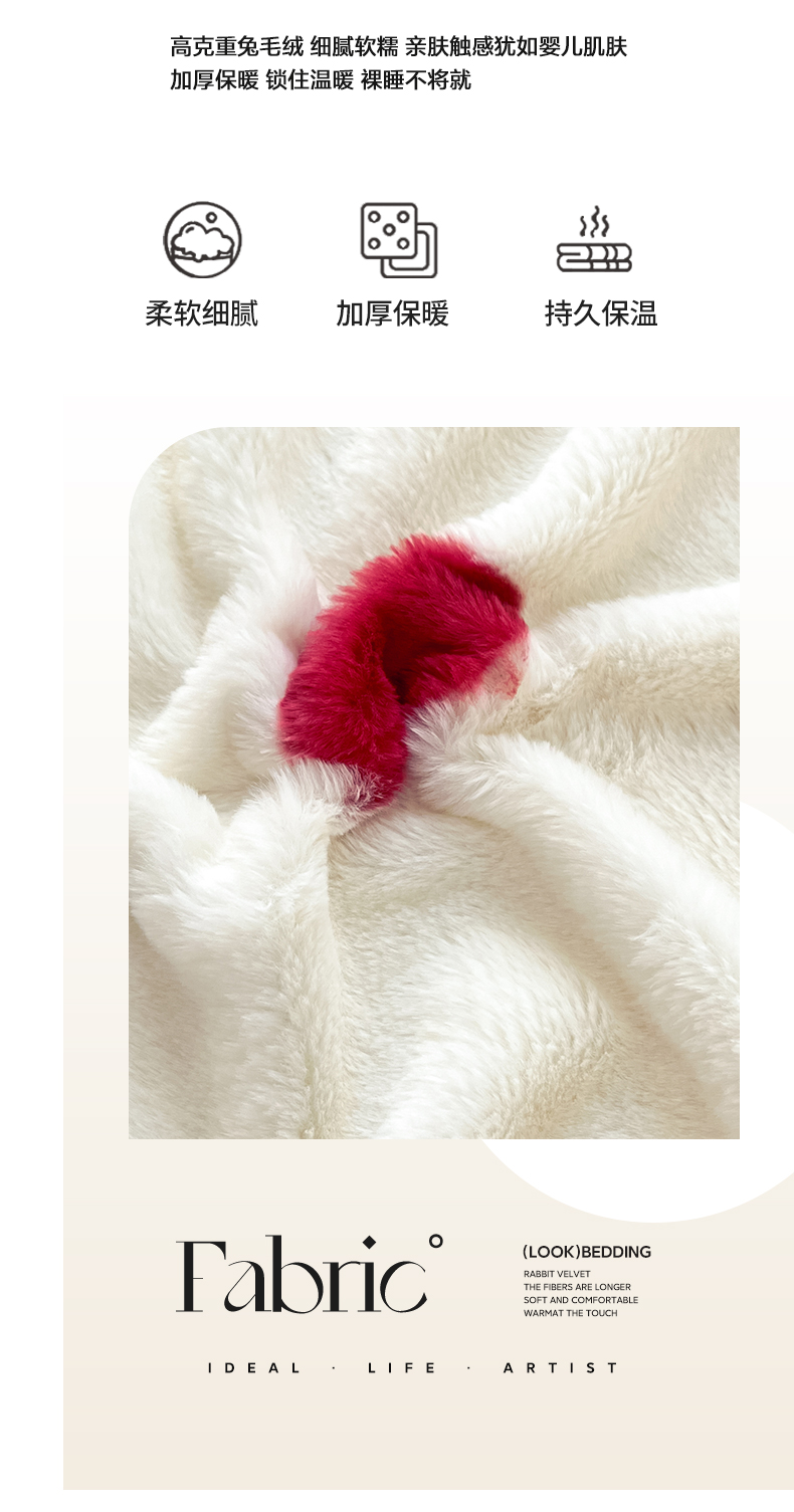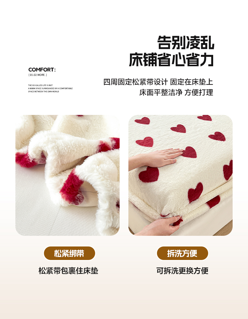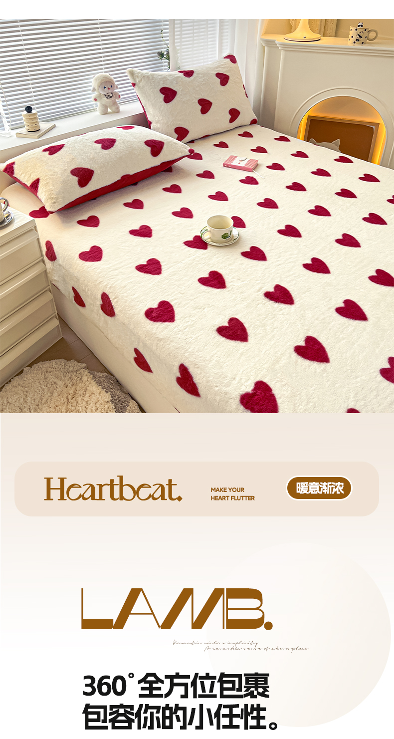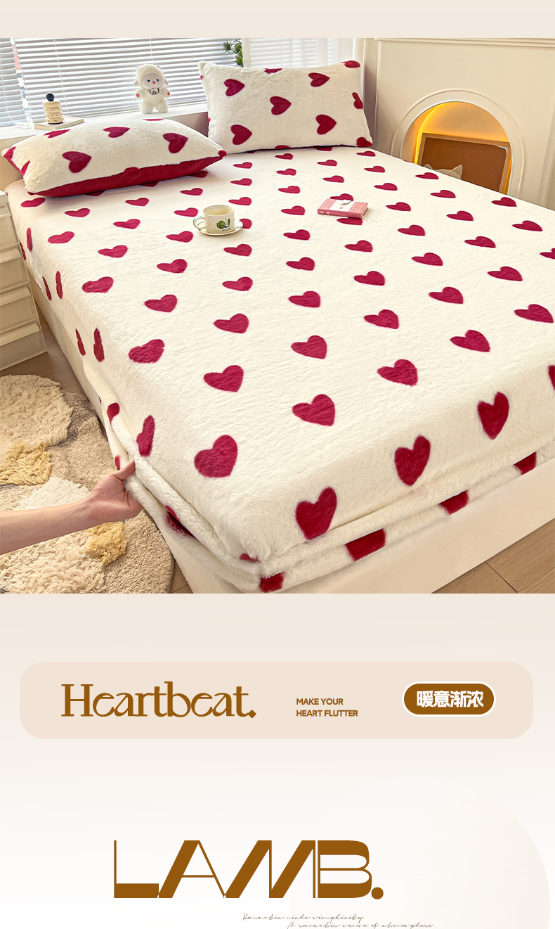 商品名称:雅居纺家纺 2025新款高克重兔绒印花单床笠-爱心 爱心-红