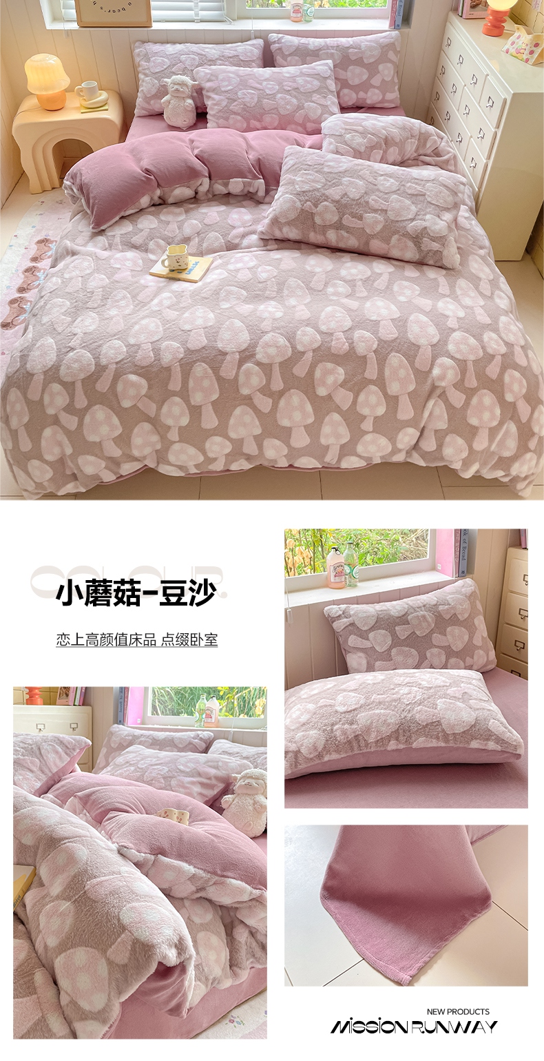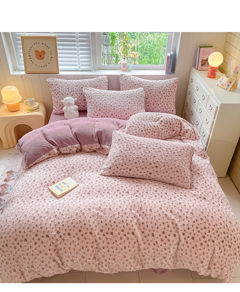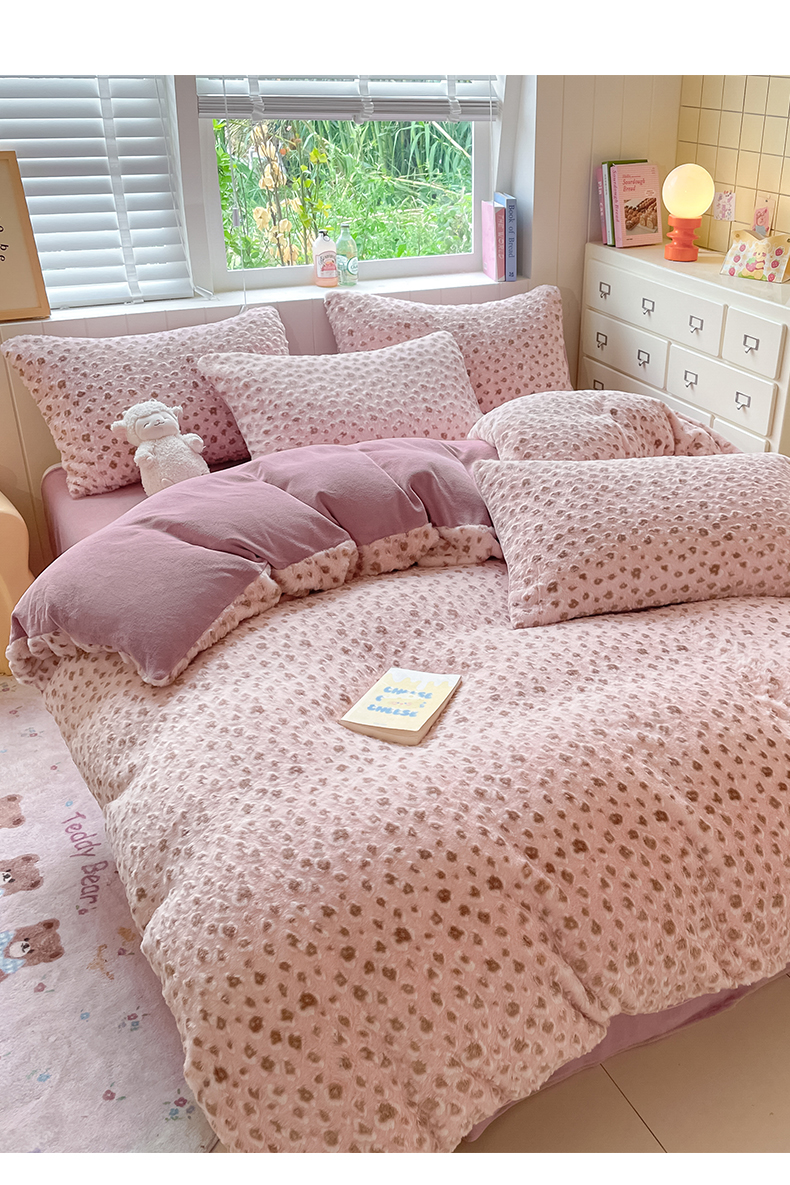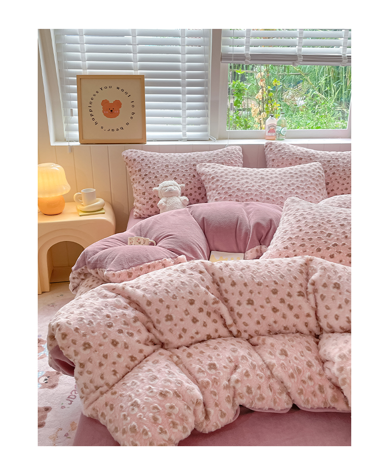 商品名称:雅居纺家纺 2025新款立体雕花兔绒牛奶绒四件套 豹纹-豆沙