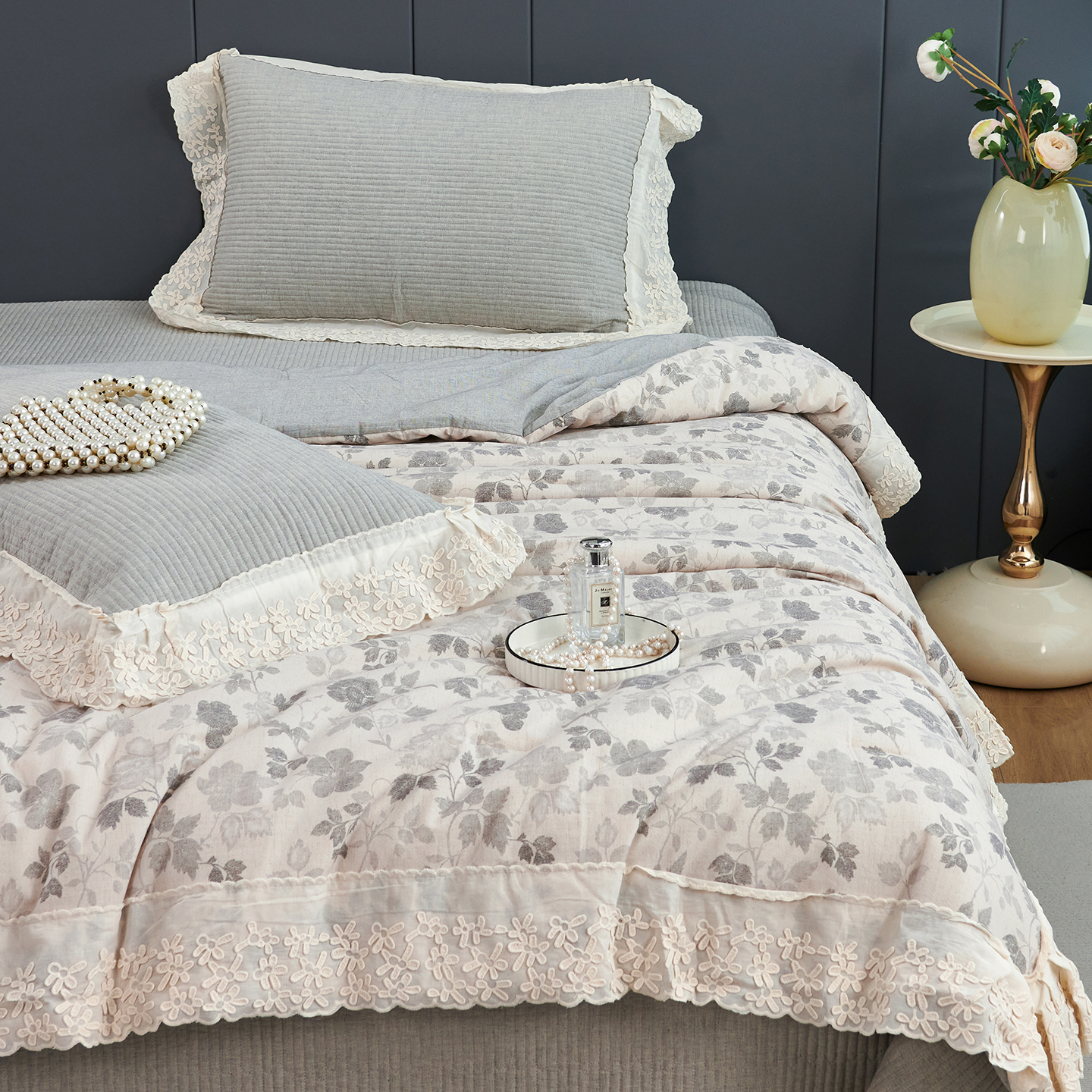 优希家纺 2025新款暮悠棉麻多功能春秋被四件套 花雾柔