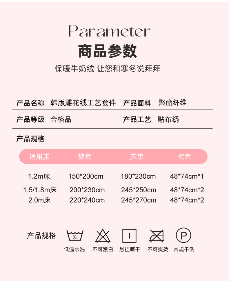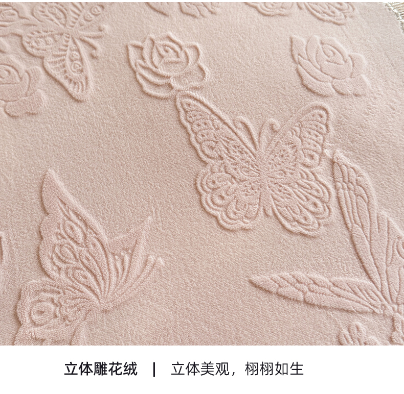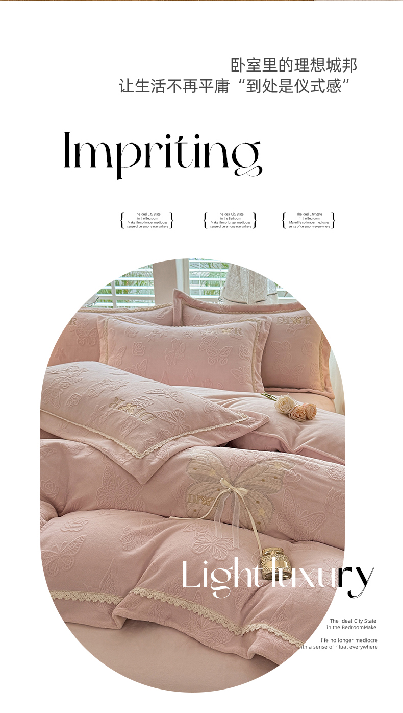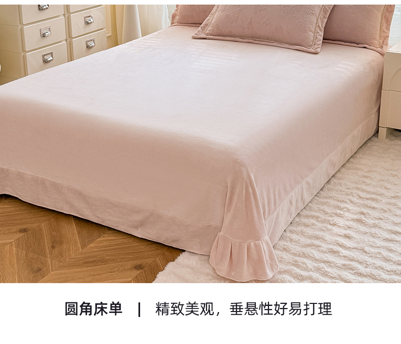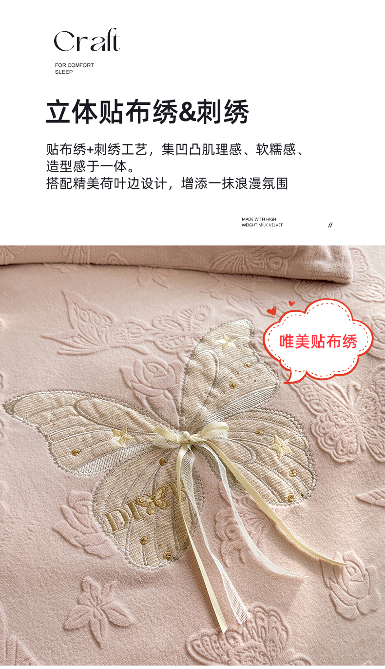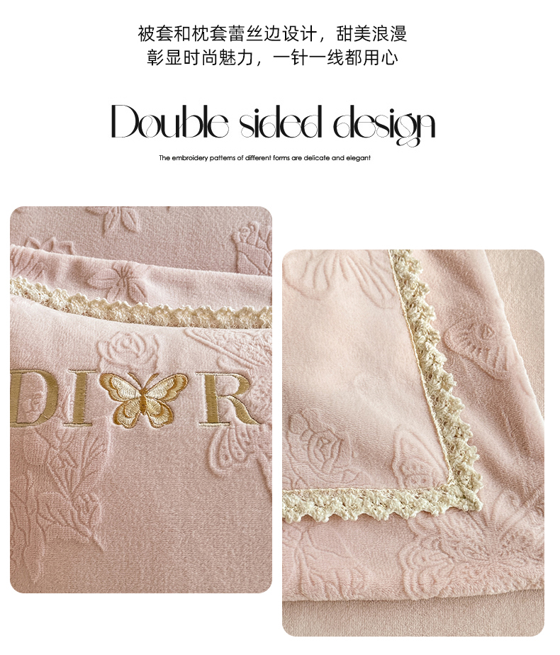 商品名称:艾唯希家纺 2025新款韩版雕花绒工艺四件套全消光牛奶绒-语蝶系列 语蝶-新粉