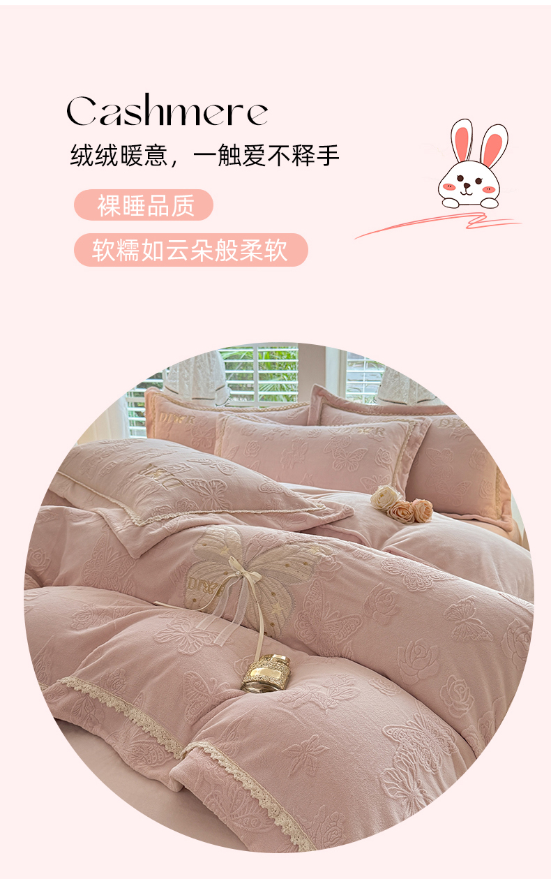 (总)艾唯希家纺 2025新款小兔毛全消光牛奶绒工艺四件套-绒樱桃系列,绒樱桃-粉,绒樱桃-驼