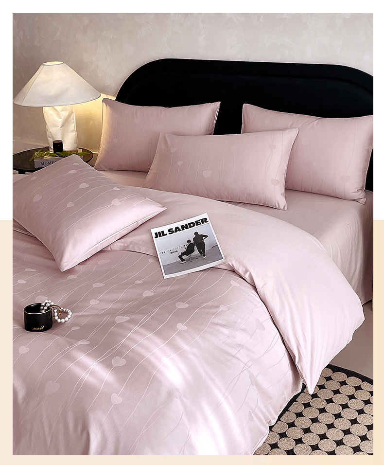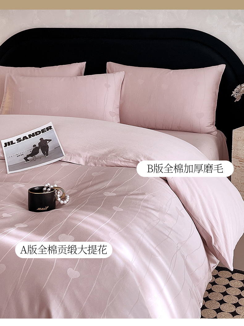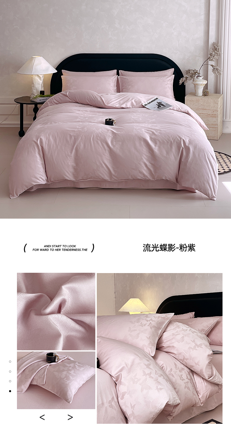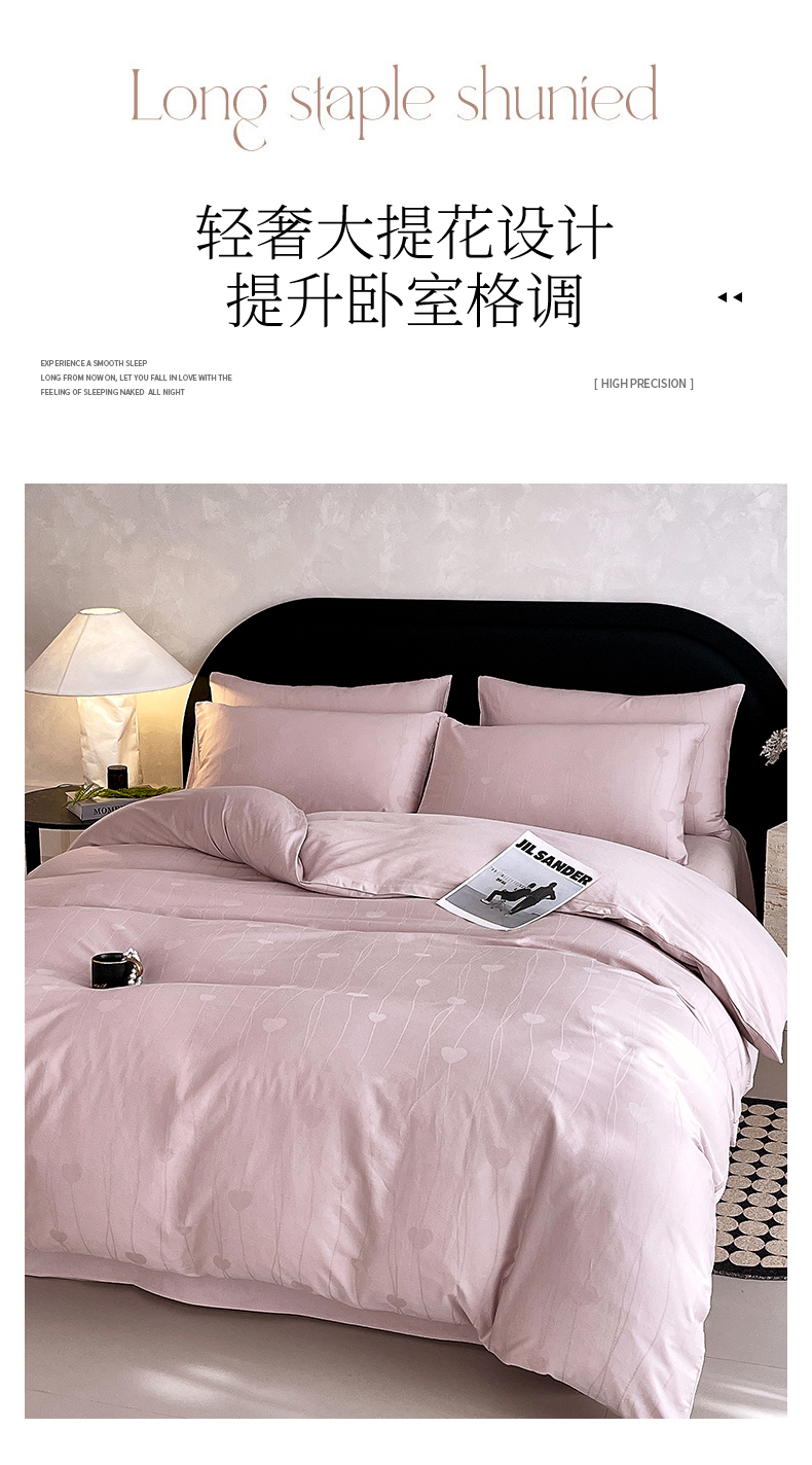 商品名称:琪格格纺织 2025新款50S贡缎大提花加厚全棉磨毛四件套 心愿-粉紫