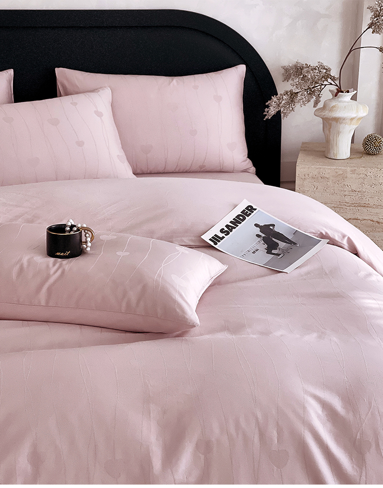 琪格格纺织 2025新款50S贡缎大提花加厚全棉磨毛四件套 心愿-粉紫