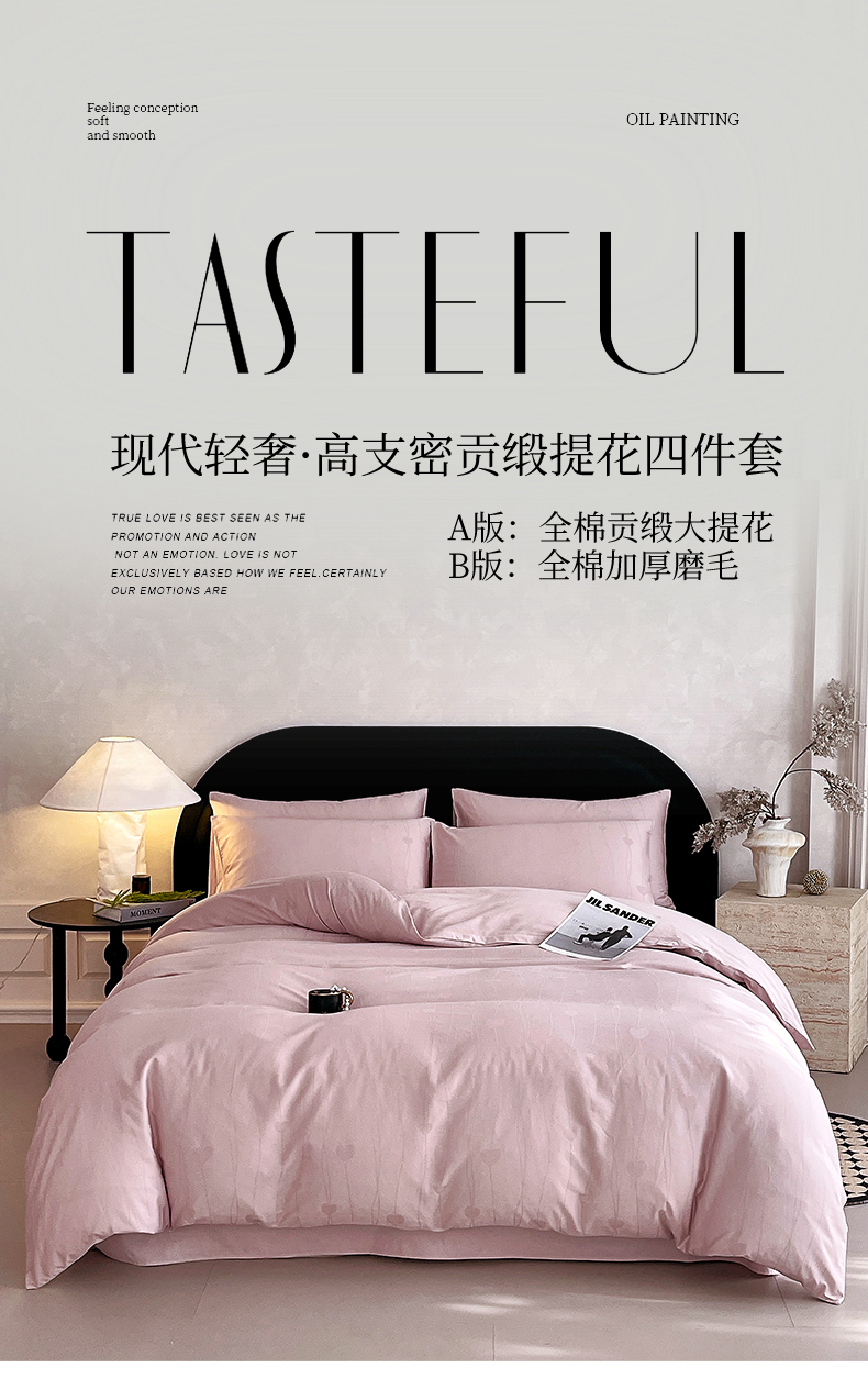 (总)琪格格纺织 2025新款50S贡缎大提花加厚全棉磨毛四件套,罗拉之梦-可可棕,理查德-咖,流光蝶影-粉紫,罗拉之梦-粉紫,如梦花涧-雨棕,随意-咖,心愿-粉紫,一蔓千花-羽棕,永恒韵律-灰,永恒韵律-咖