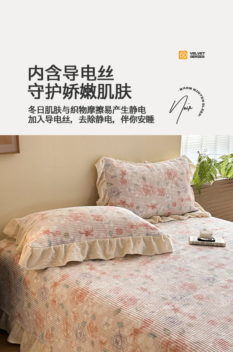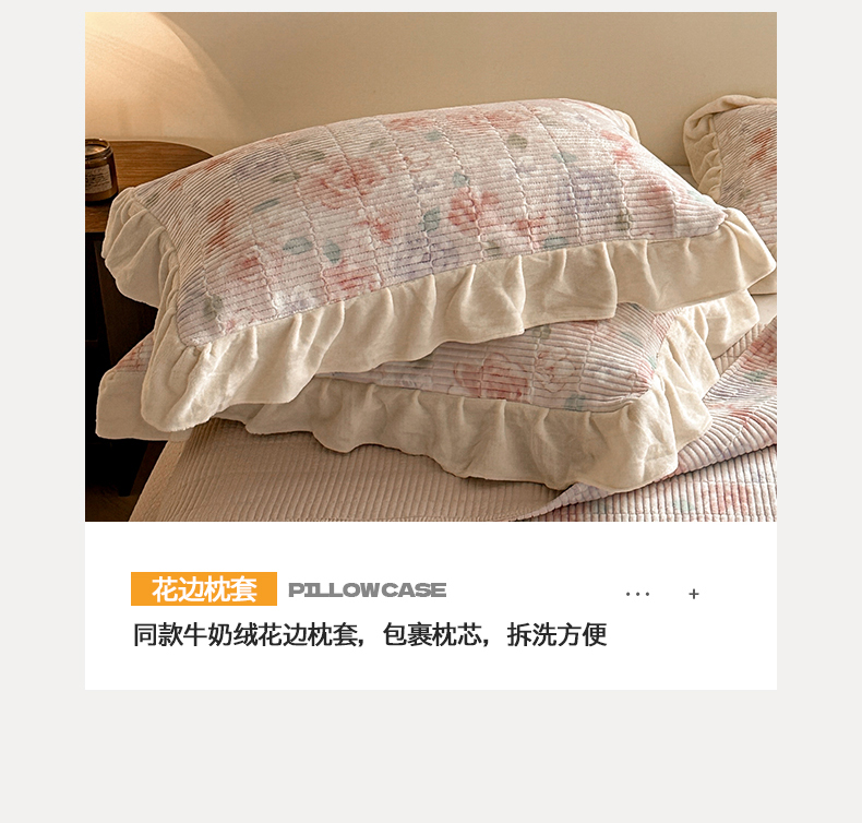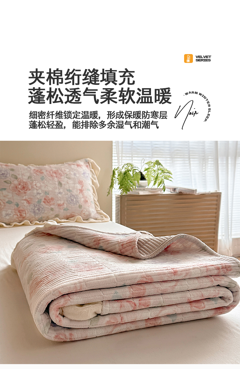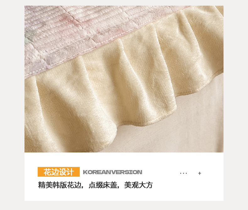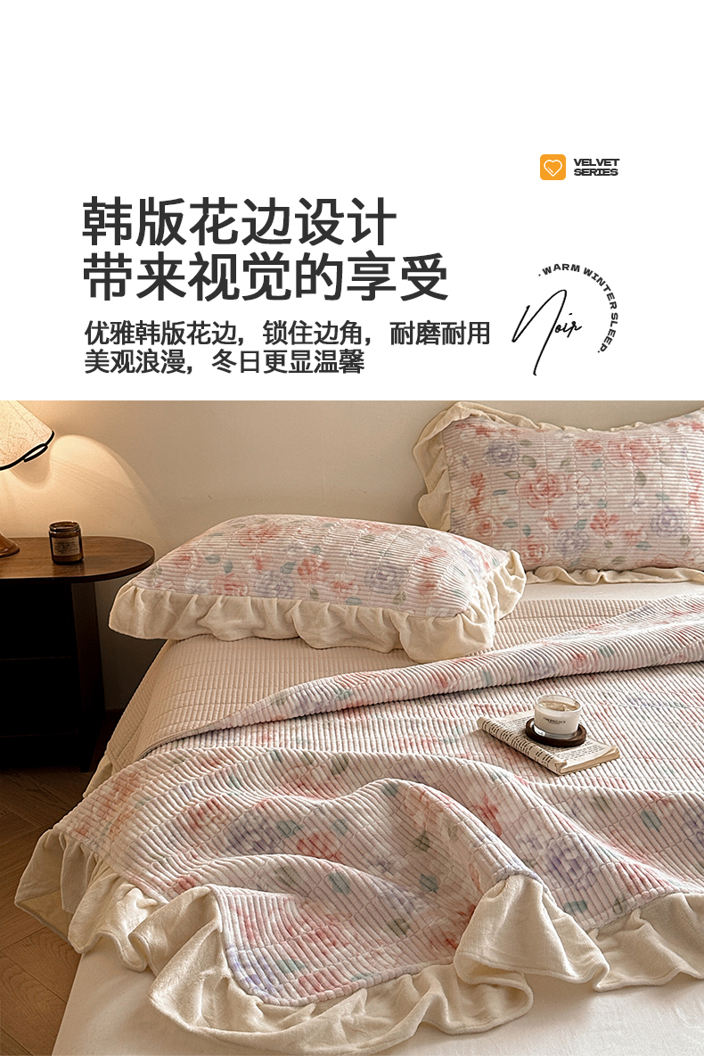 商品名称:桃心家居 2025新款韩版花边法式花卉碎花加厚牛奶绒多功能床盖单件单床盖床盖三件套单品 绒床盖-花边微朵粉