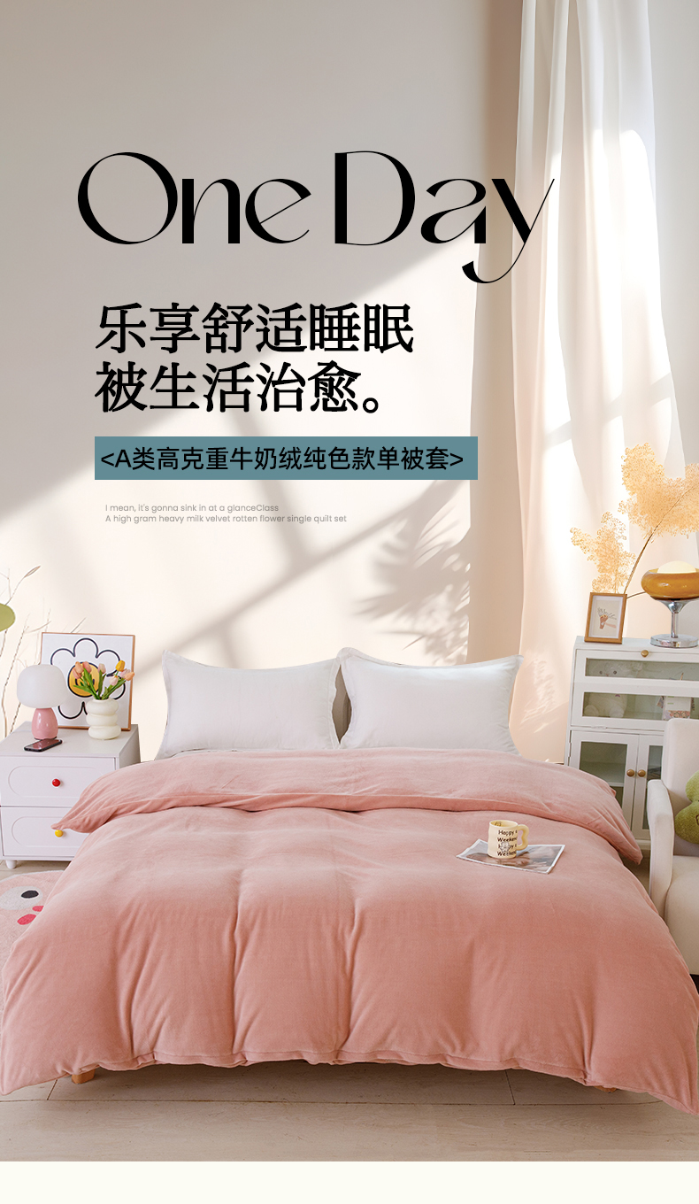 • 91家纺网 家纺一手货源 找家纺 锦罗绣 2025新款牛奶绒肌理纹单被套 暖橘